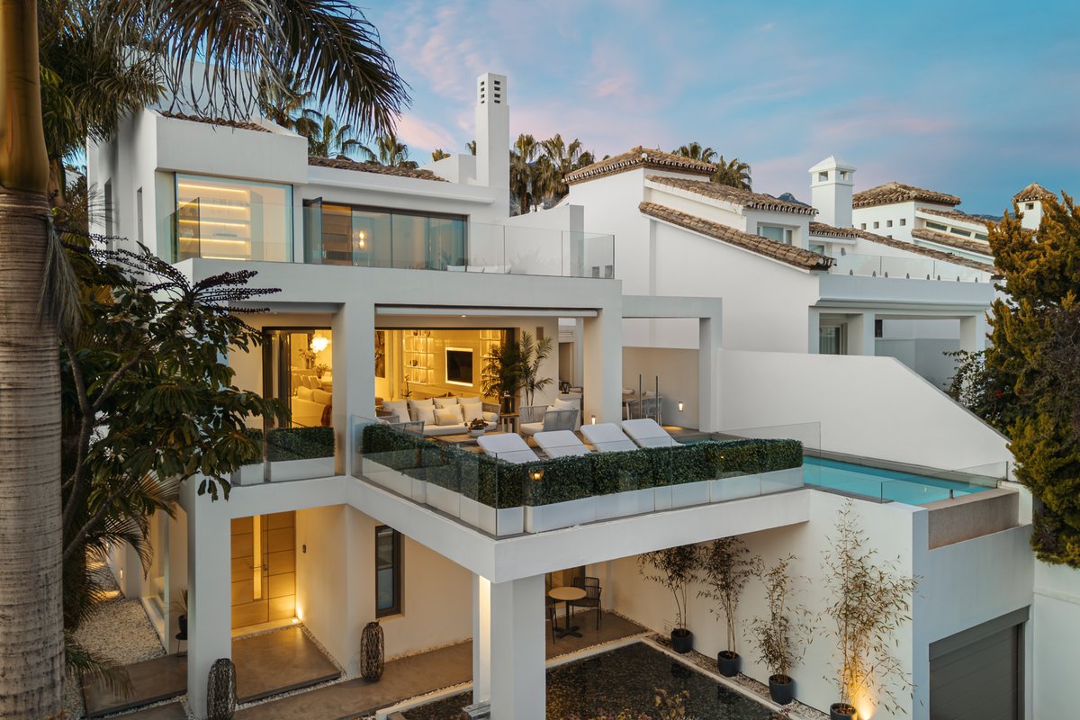 Positioned within Puente Romano on Marbella’s Golden Mile, this south-facing semi-detached villa combines contemporary design with immediate proximity to the beach and promenade.
