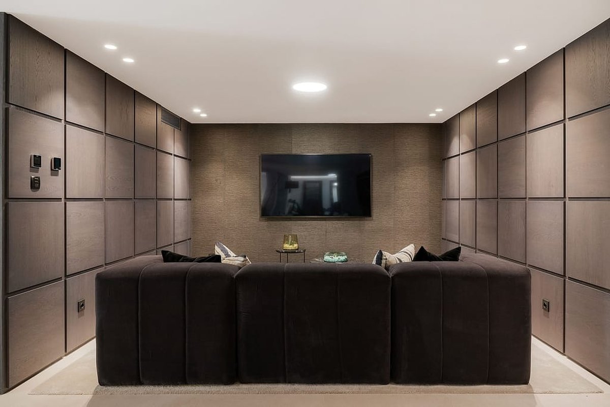 On the lower level, the villa reveals a world of leisure and comfort. There is a cinema room, gym, wine cellar, bar, and games area with a pool table—ideal for entertaining friends and family. Two additional en-suite bedrooms, a laundry room, storage space, and a large garage for multiple vehicles complete the home’s impressive layout.