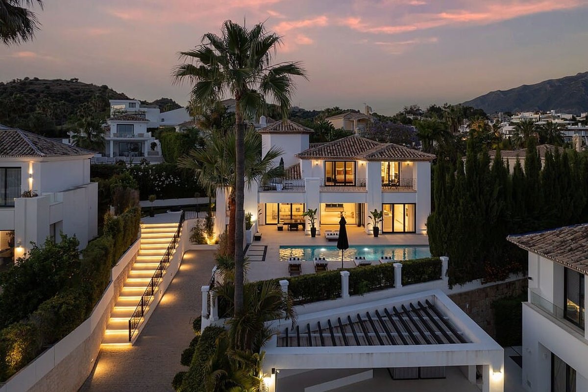 This magnificent contemporary villa is a masterpiece of modern architecture, perfectly positioned in the prestigious enclave of Nueva Andalucía, Marbella. With its elegant design, panoramic sea and golf views, and southwest orientation, the property captures sunlight throughout the day, creating a warm and inviting atmosphere. Offering an exceptional blend of privacy, sophistication, and comfort, this five-bedroom villa embodies the finest aspects of the Mediterranean lifestyle, making it a true sanctuary on the Costa del Sol.