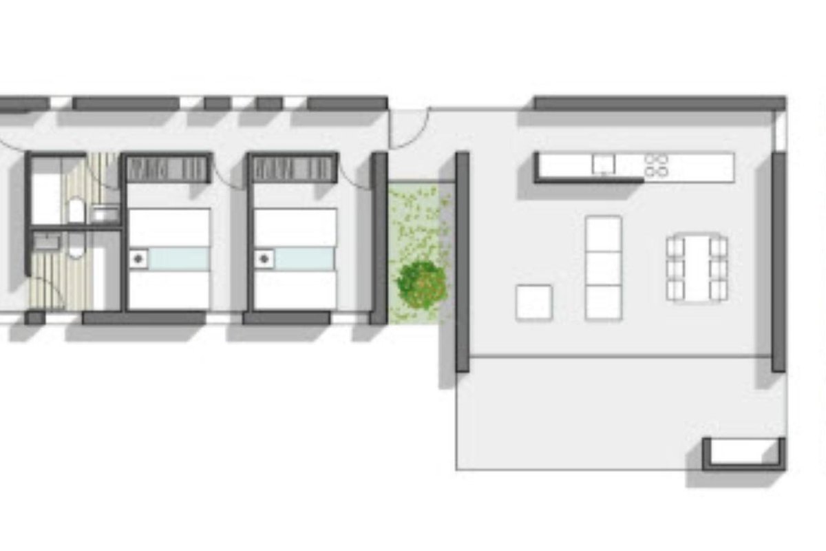 Modern new construction villa for sale in Pedreguer, located in the quiet urbanization of Monte Solana with panoramic views. This villa can be built on different plots, including one with sea views. The project can be adapted to your own wishes and can be ready within a period of 14 months. There is a lounge/dining room, from where you can enter the covered terrace, an open kitchen, a master bedroom with dressing room and en-suite bathroom, 2 double bedrooms and a family bathroom.~