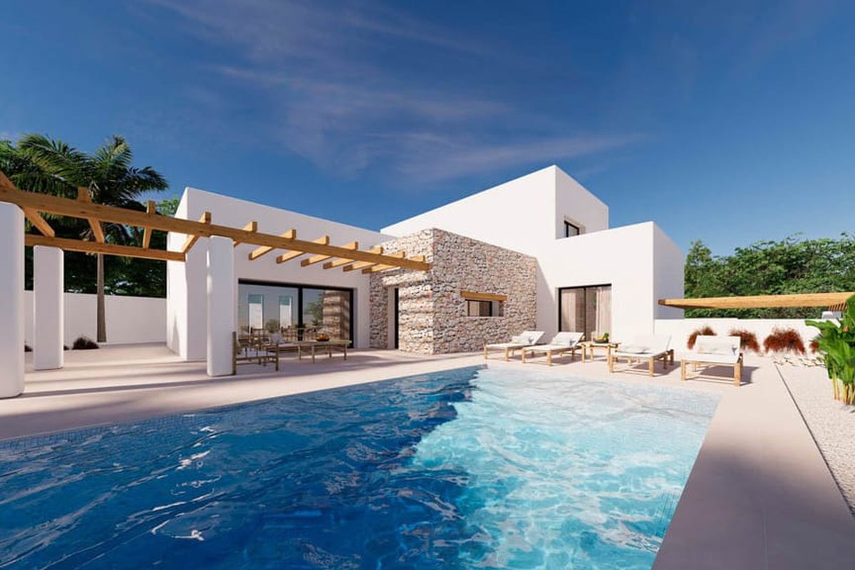 This stunning four-bedroom, three-bathroom Ibizan-style villa, with an 800 m² plot and 394 m² of constructed area, is priced at €1,499,000. Completion is expected in 2025, with the flexibility to personalise your dream home to your exact specifications.