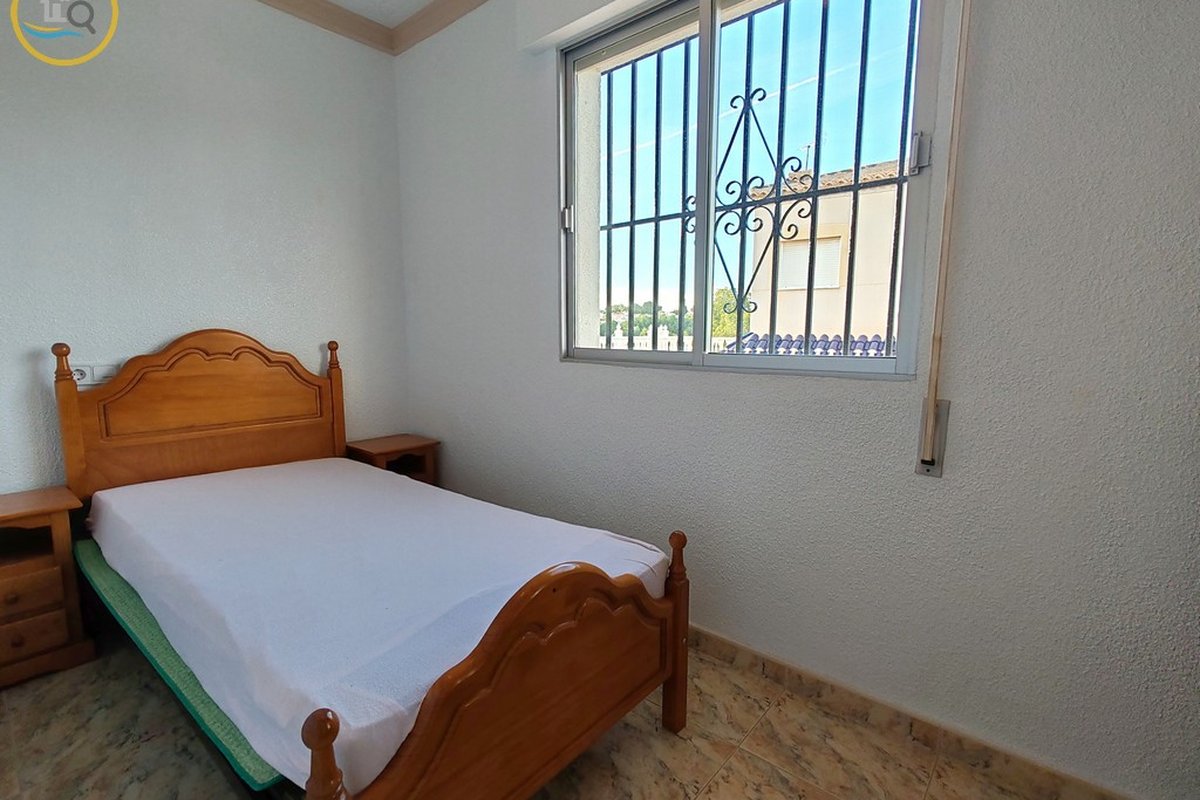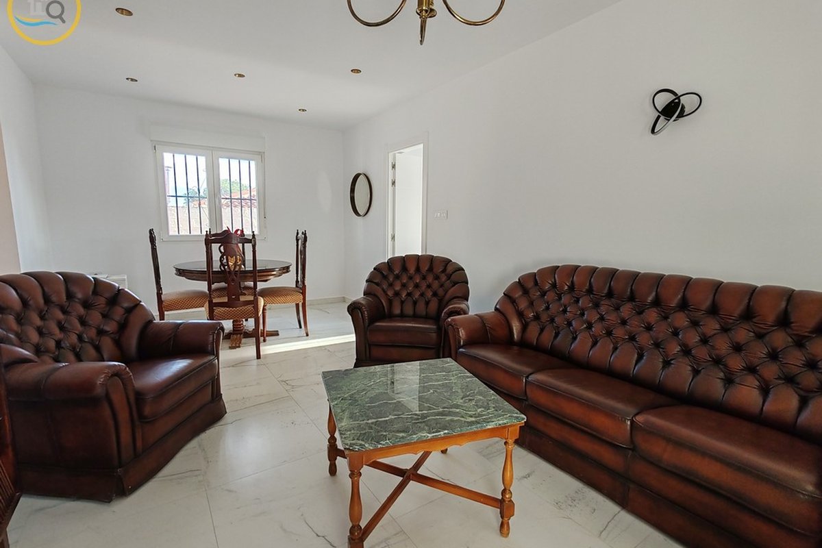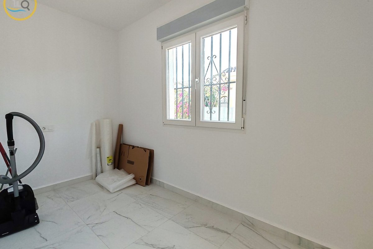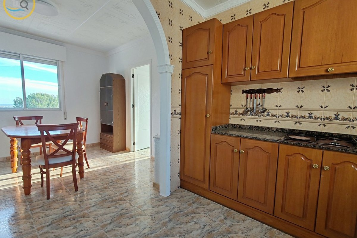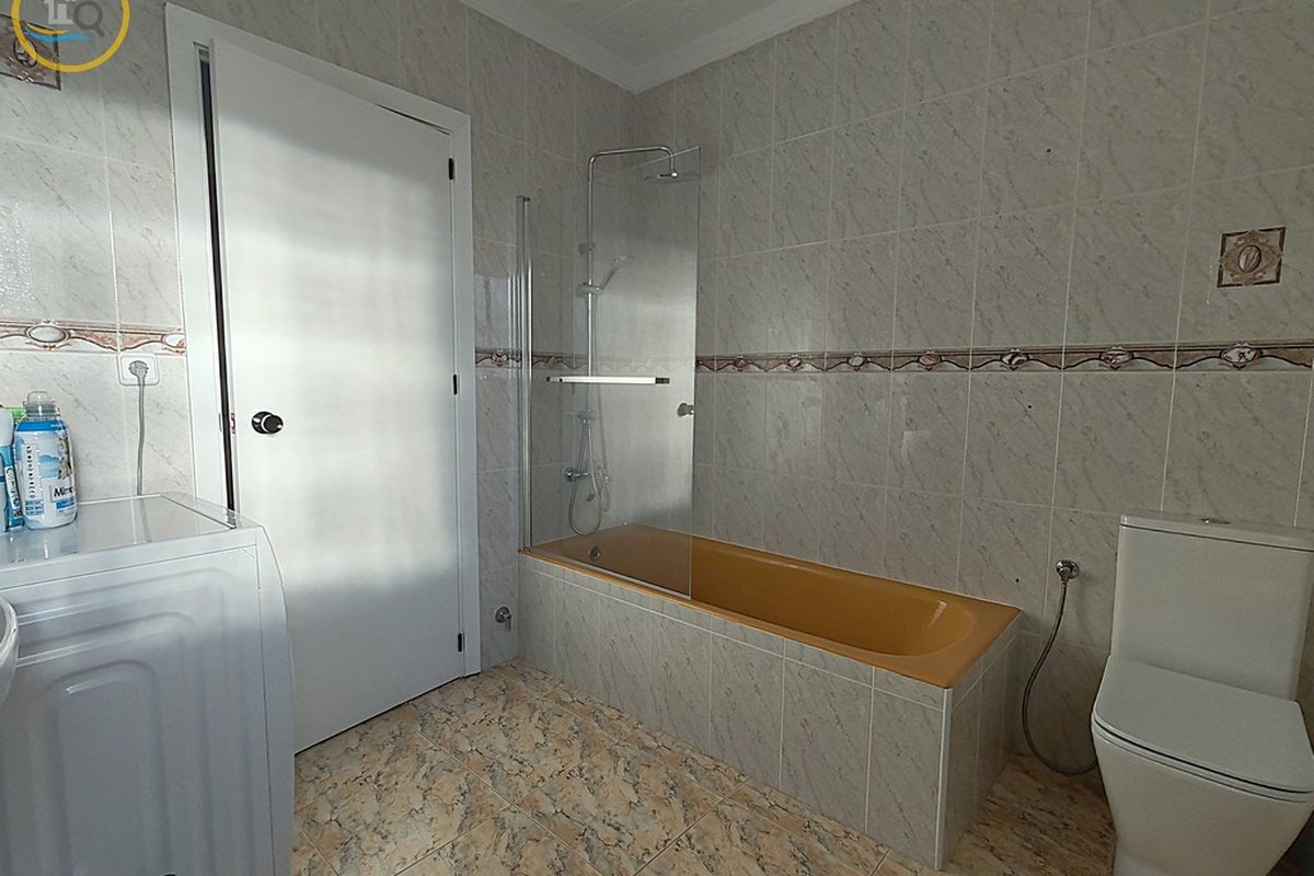 This plot has parking with space for several cars. The villa is currently divided into two separate spaces on the ground floor which are accessed through a glass door that opens onto a spacious and bright open-plan kitchen recently installed with a large central island and a dining room. To the right of the kitchen is a hallway that leads to a spacious bedroom, a family bathroom, and a small room that could be used as an office or dressing room. At the rear of the kitchen is a good-sized living room and a door from the living area that leads to a covered terrace. A second door in the living room leads to a spacious master bedroom with a private balcony.