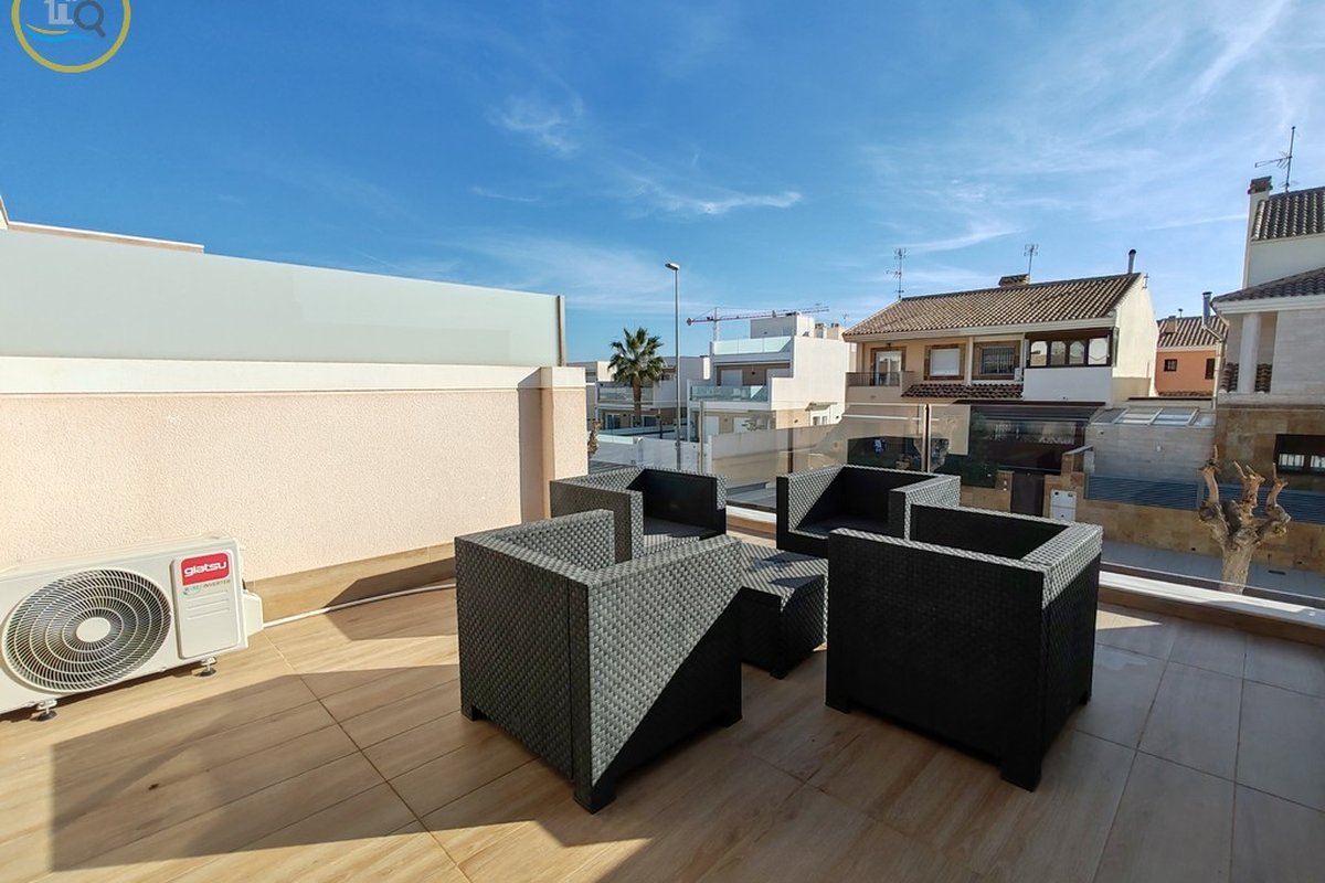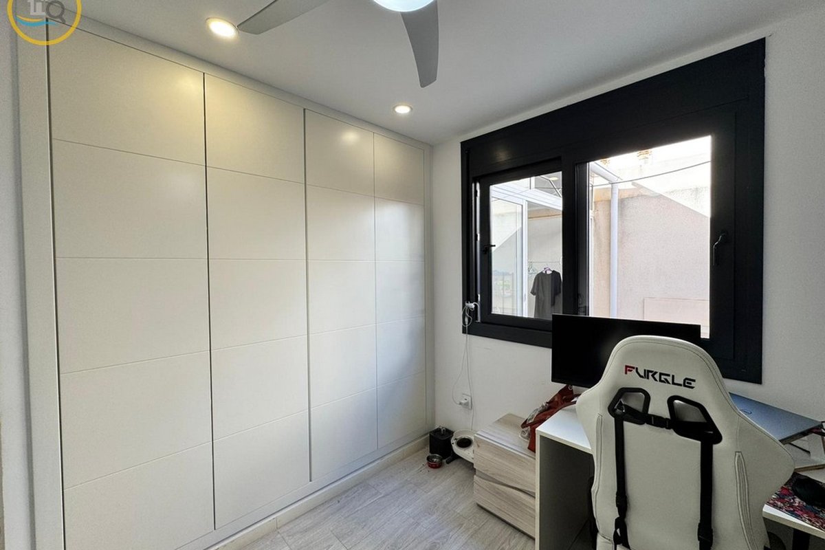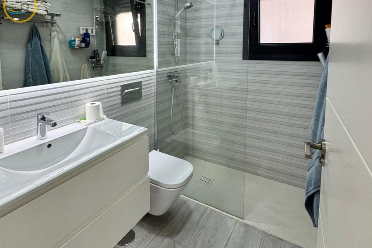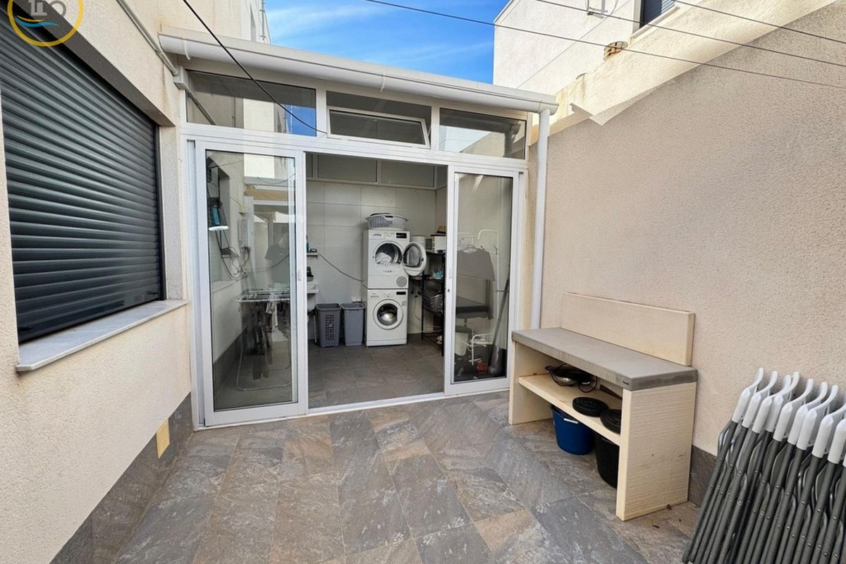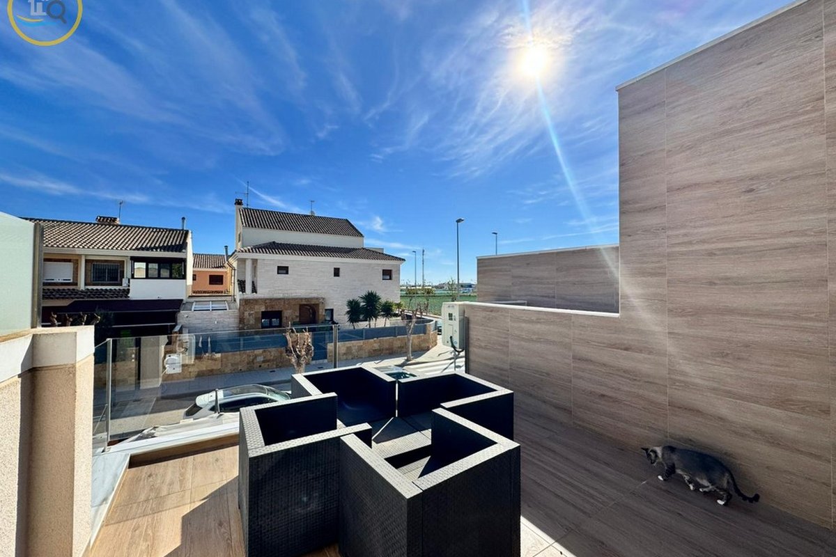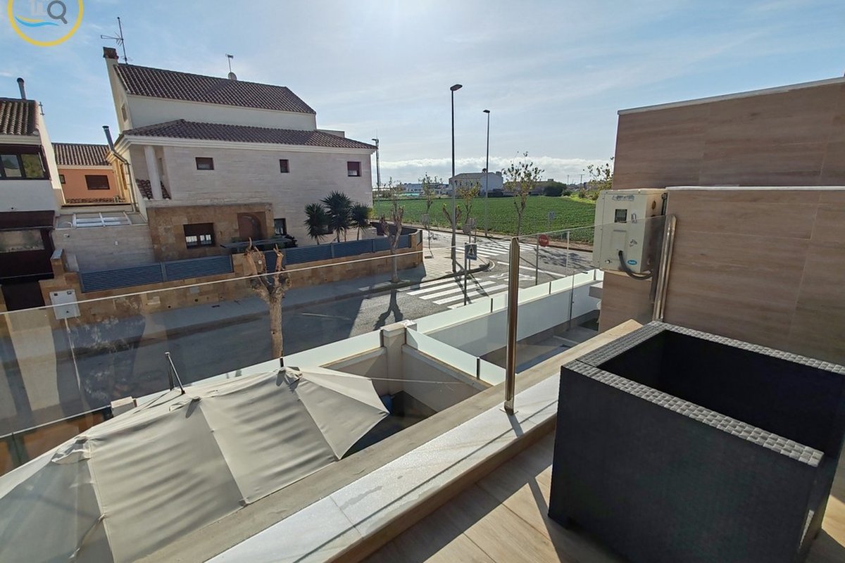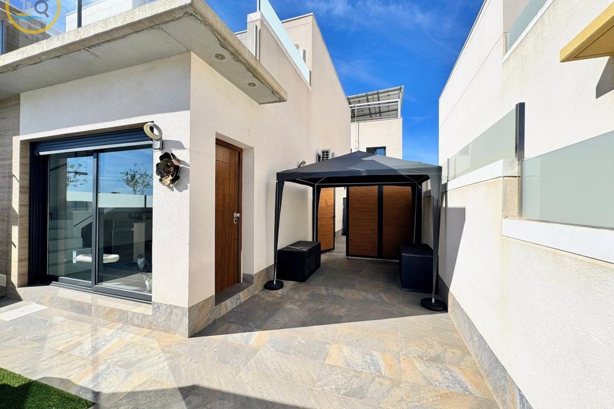 This plot has parking space for 2 or more cars. This smart home with smart opening can be controlled through your phone. Currently, the house offers a heated pool with jacuzzi area and a relaxation area. The entrance of the house leads to a spacious and bright living-dining room and a fully equipped open kitchen. On the ground floor there is a bathroom with shower and a double bedroom with fitted wardrobes, a modern and metallic railing that will lead to the first floor where the second bathroom with shower is located, two double bedrooms, both with fitted wardrobes, and along the hallway, a 20 m² terrace with glass windows, a charming place to sit and enjoy the sun.
