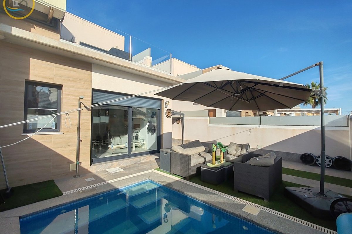 An opportunity to acquire a modern 2-story semi-detached house with its southeast orientation, on a plot of 160 m² with a private heated pool with jacuzzi and parking for at least 2 cars.