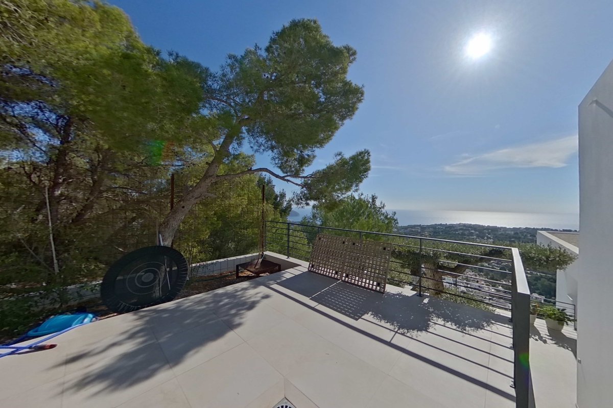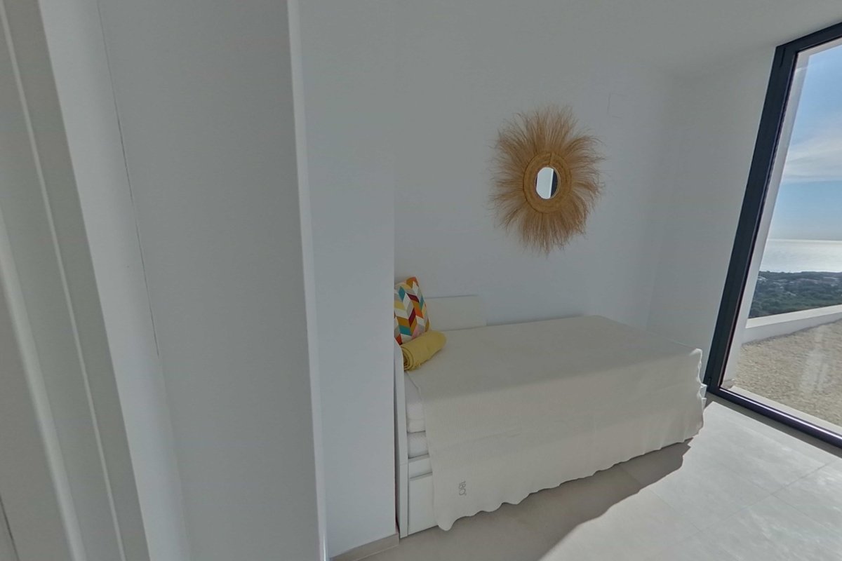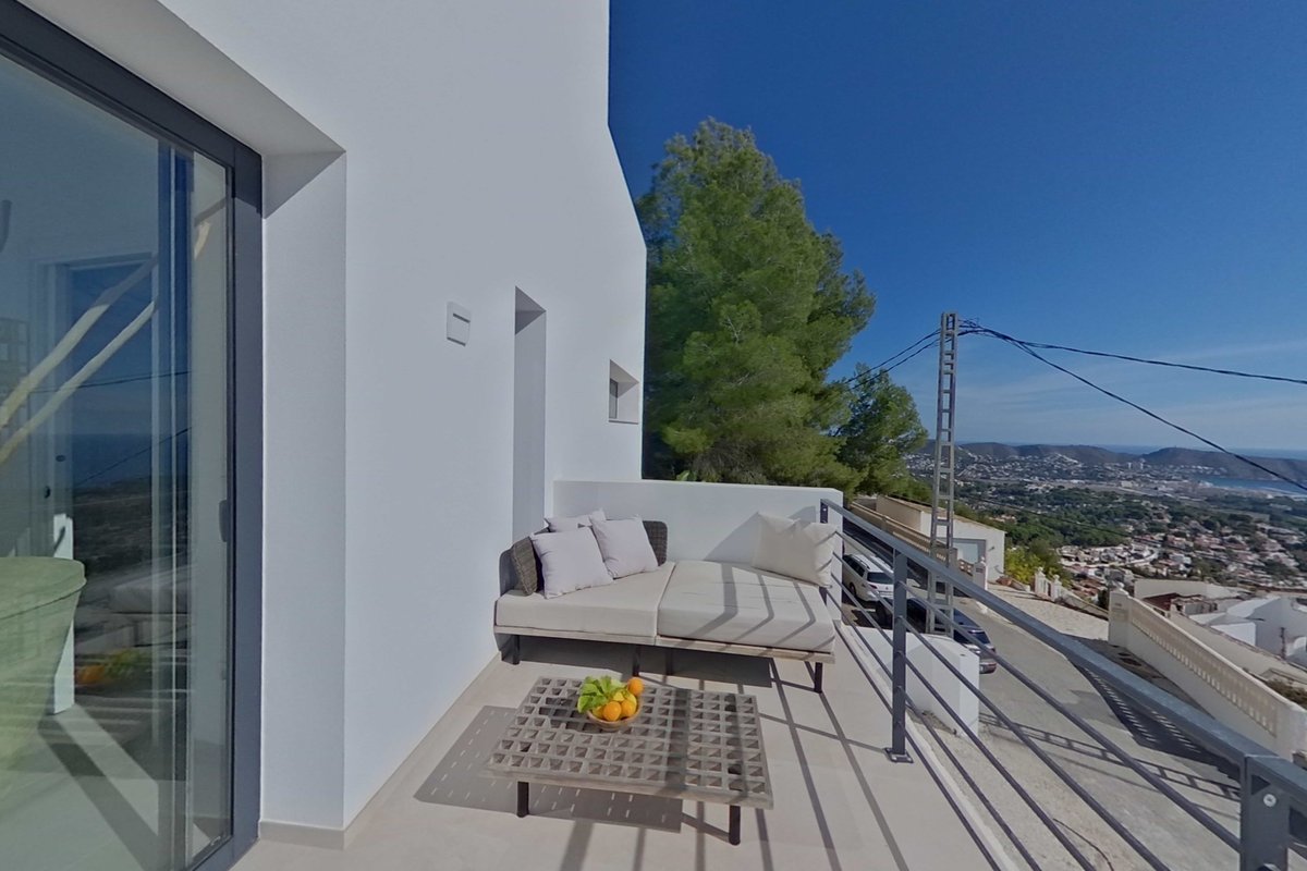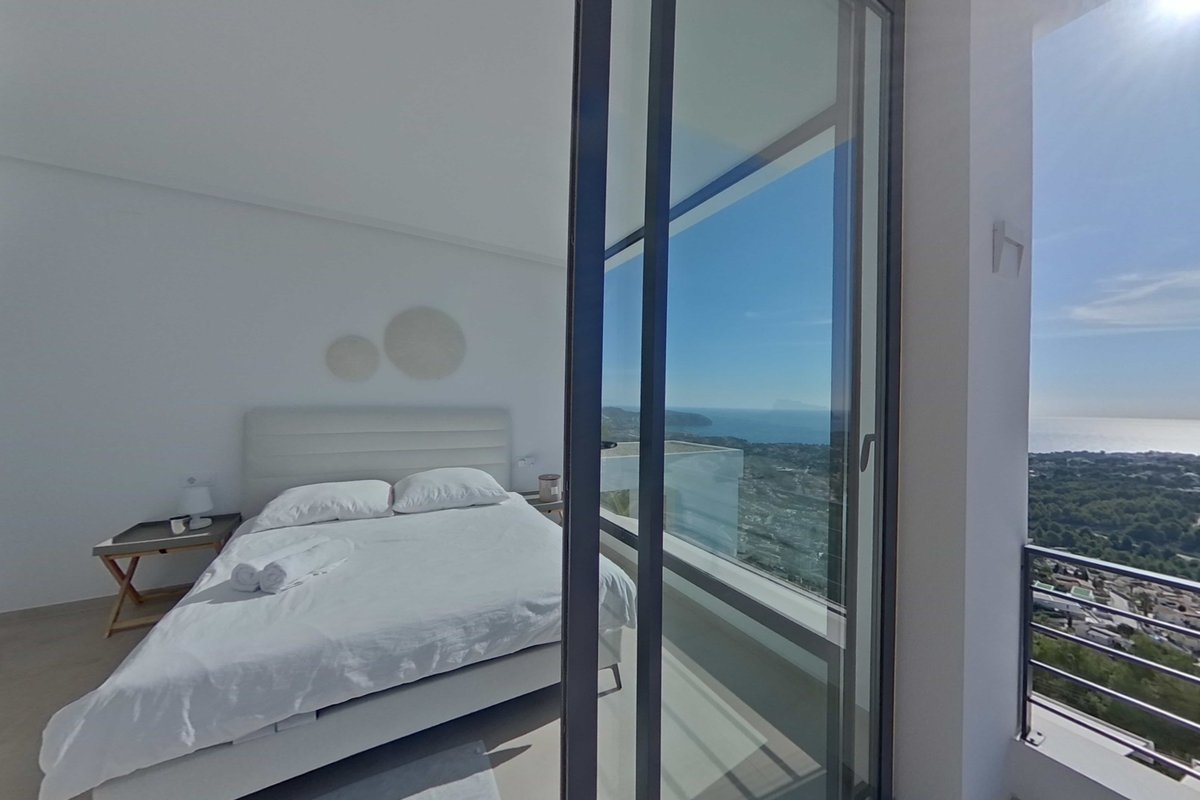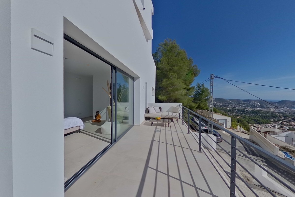 Welcome to 180° Oceanview Villa Moraira,~~The name of this luxury villa speaks for itself, with breathtaking views over the entire region from every angle of the property. This luxury villa has recently been completed and equipped with all the latest equipment and materials, paying meticulous attention to detail.~~The villa is spread out over 4 floors connected by an elevator, which goes from the entry level up to the living area, providing access to the 2 upper bedrooms via stairs. On the entry level is an open space fully prepared to be converted into a bedroom ensuite, or it can be used as a spacious garage for 2 cars by adding a garage door; this is included in the price and adaptable to the needs of the new owners.~~On the 2nd level, you will find a spacious bedroom ensuite with a walk-in closet. As this is not directly connected to the main living area, it offers an extremely unique space for guests, with incredible views available from all areas of the property!~~Moving up to the 3rd level, you arrive at the living area. Outside, you have the saltwater pool surrounded by a BBQ area, a lounge area, and a cozy corner to enjoy any meal of the day. Inside, you will find the fully equipped American-style kitchen with the latest equipment and premium brands. Next to the kitchen, you'll find the dining area and living area, all areas connected to the spacious terrace by sliding doors, offering a true Mediterranean living style.~~By stairs, you move up to the upper 2 bedrooms, both ensuite. One of the rooms has a double bed with an additional area featuring a retractable bed, which could also be used as an office space or extra wardrobe. The master bedroom itself comes with a walk-in closet/makeup area and a private terrace.~~All the air conditioning units have been integrated into the design and cleverly covered by panels. There is underfloor heating throughout the property.~~If you are looking for a state-of-the-art villa with breathtaking views, this is the place for you.~~All of this is just 9 minutes away by car from Moraira and 20 minutes from Calpe.~