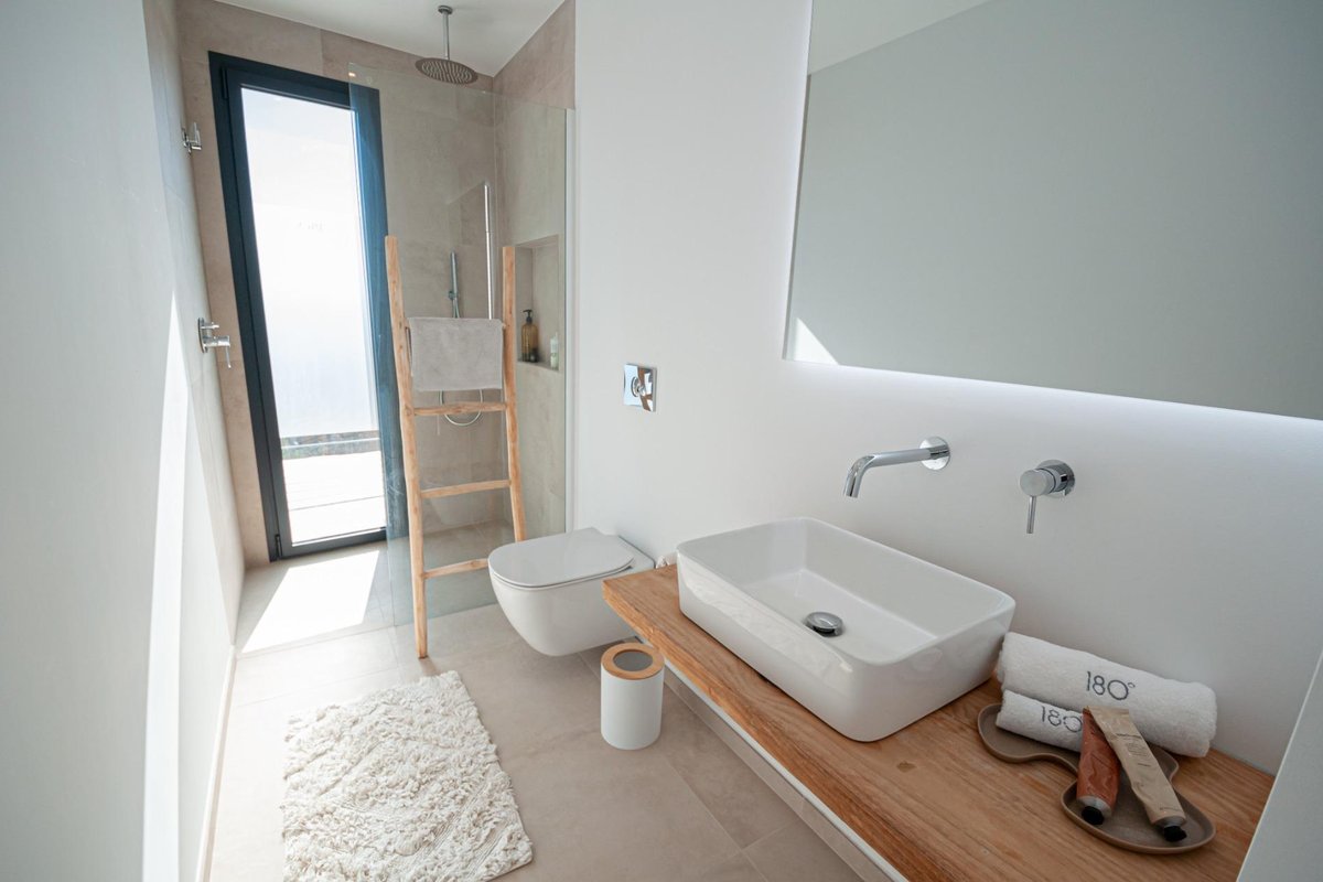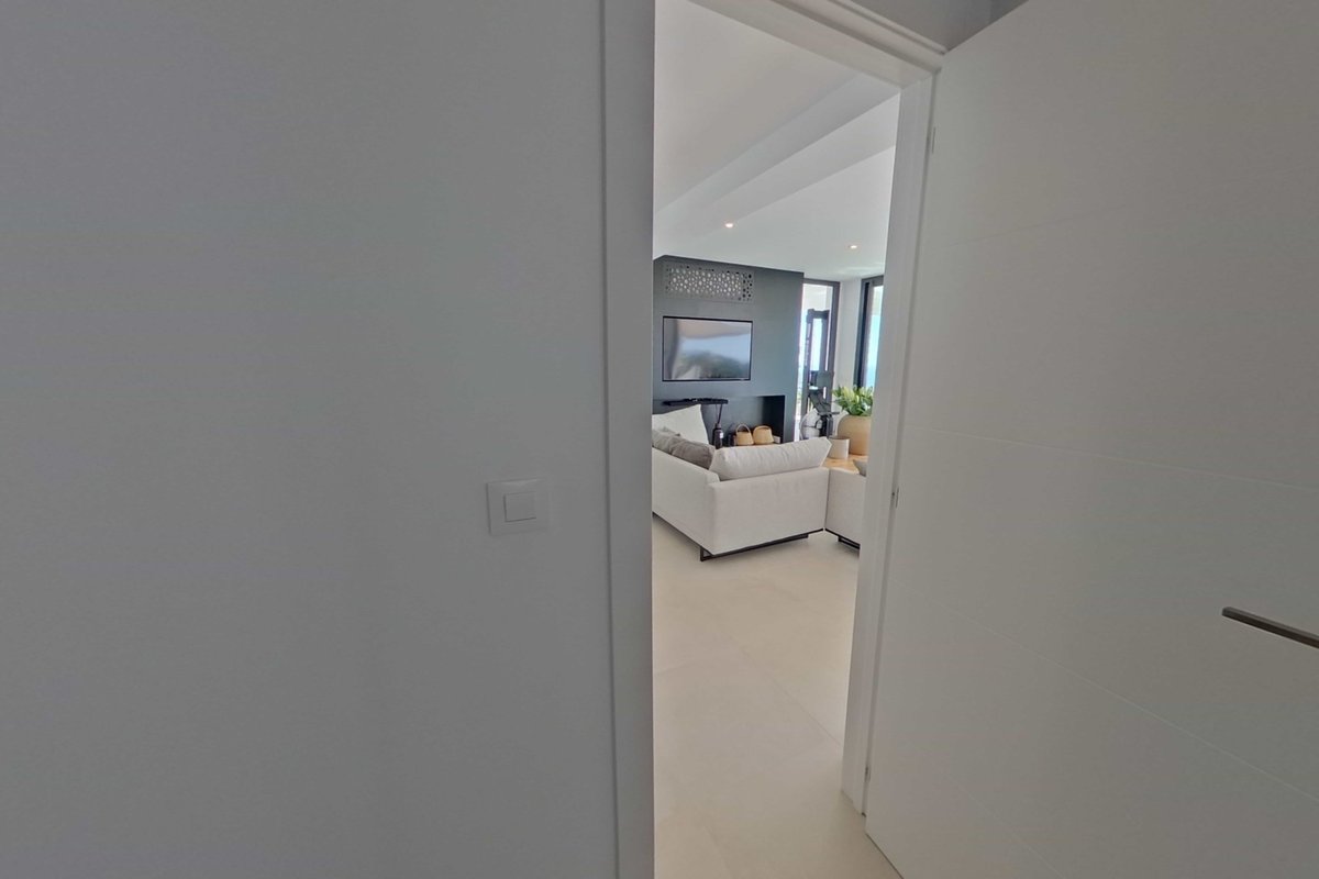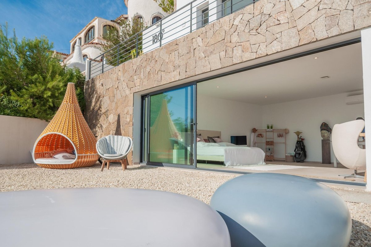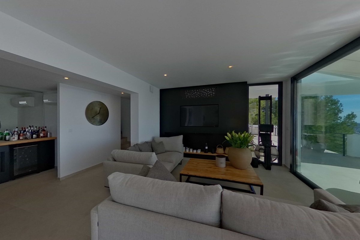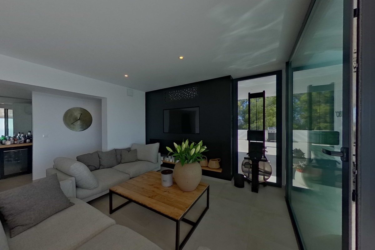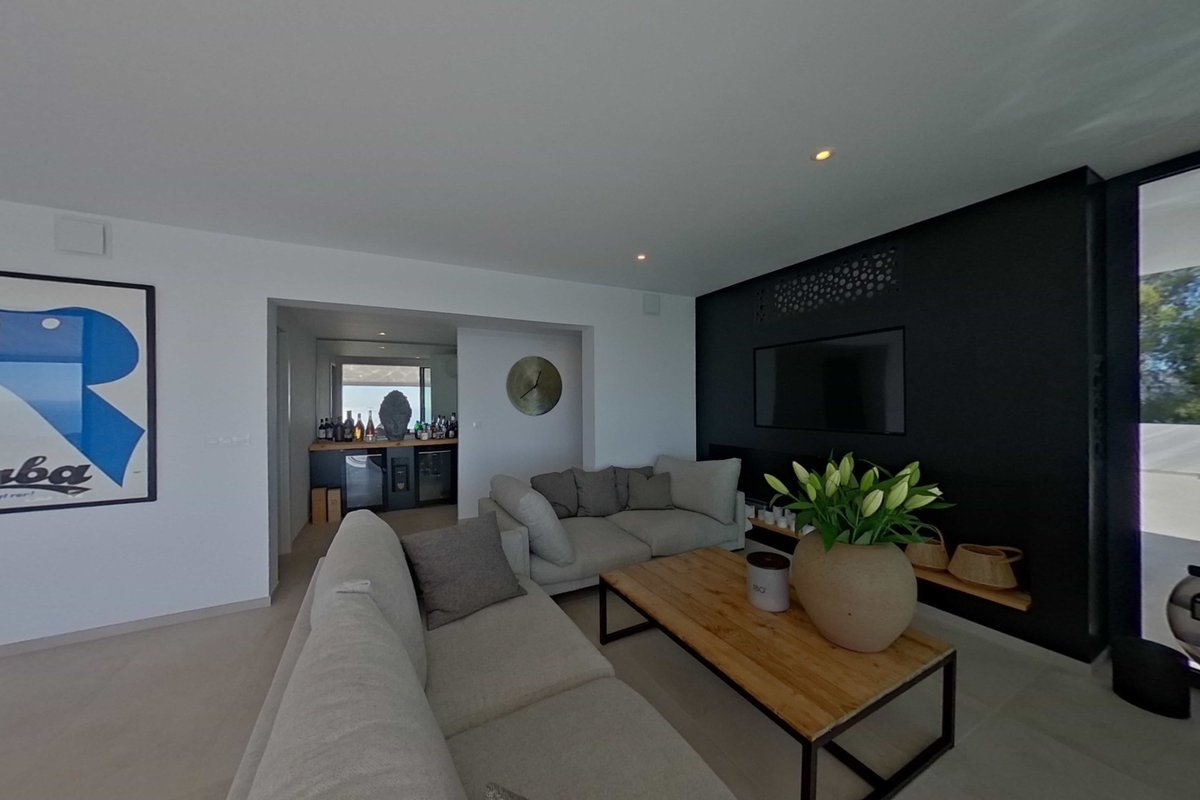 Welcome to 180° Oceanview Villa Moraira,~~The name of this luxury villa speaks for itself, with breathtaking views over the entire region from every angle of the property. This luxury villa has recently been completed and equipped with all the latest equipment and materials, paying meticulous attention to detail.~~The villa is spread out over 4 floors connected by an elevator, which goes from the entry level up to the living area, providing access to the 2 upper bedrooms via stairs. On the entry level is an open space fully prepared to be converted into a bedroom ensuite, or it can be used as a spacious garage for 2 cars by adding a garage door; this is included in the price and adaptable to the needs of the new owners.~~On the 2nd level, you will find a spacious bedroom ensuite with a walk-in closet. As this is not directly connected to the main living area, it offers an extremely unique space for guests, with incredible views available from all areas of the property!~~Moving up to the 3rd level, you arrive at the living area. Outside, you have the saltwater pool surrounded by a BBQ area, a lounge area, and a cozy corner to enjoy any meal of the day. Inside, you will find the fully equipped American-style kitchen with the latest equipment and premium brands. Next to the kitchen, you'll find the dining area and living area, all areas connected to the spacious terrace by sliding doors, offering a true Mediterranean living style.~~By stairs, you move up to the upper 2 bedrooms, both ensuite. One of the rooms has a double bed with an additional area featuring a retractable bed, which could also be used as an office space or extra wardrobe. The master bedroom itself comes with a walk-in closet/makeup area and a private terrace.~~All the air conditioning units have been integrated into the design and cleverly covered by panels. There is underfloor heating throughout the property.~~If you are looking for a state-of-the-art villa with breathtaking views, this is the place for you.~~All of this is just 9 minutes away by car from Moraira and 20 minutes from Calpe.~