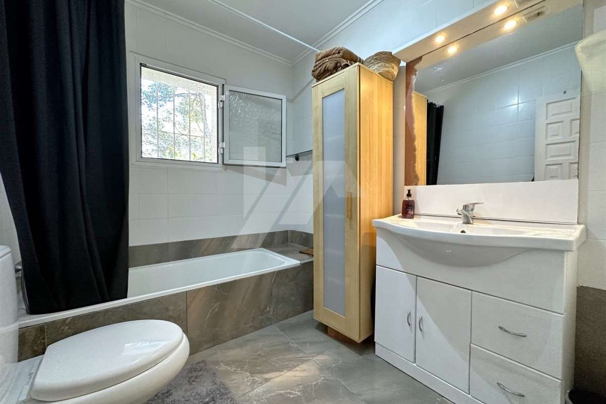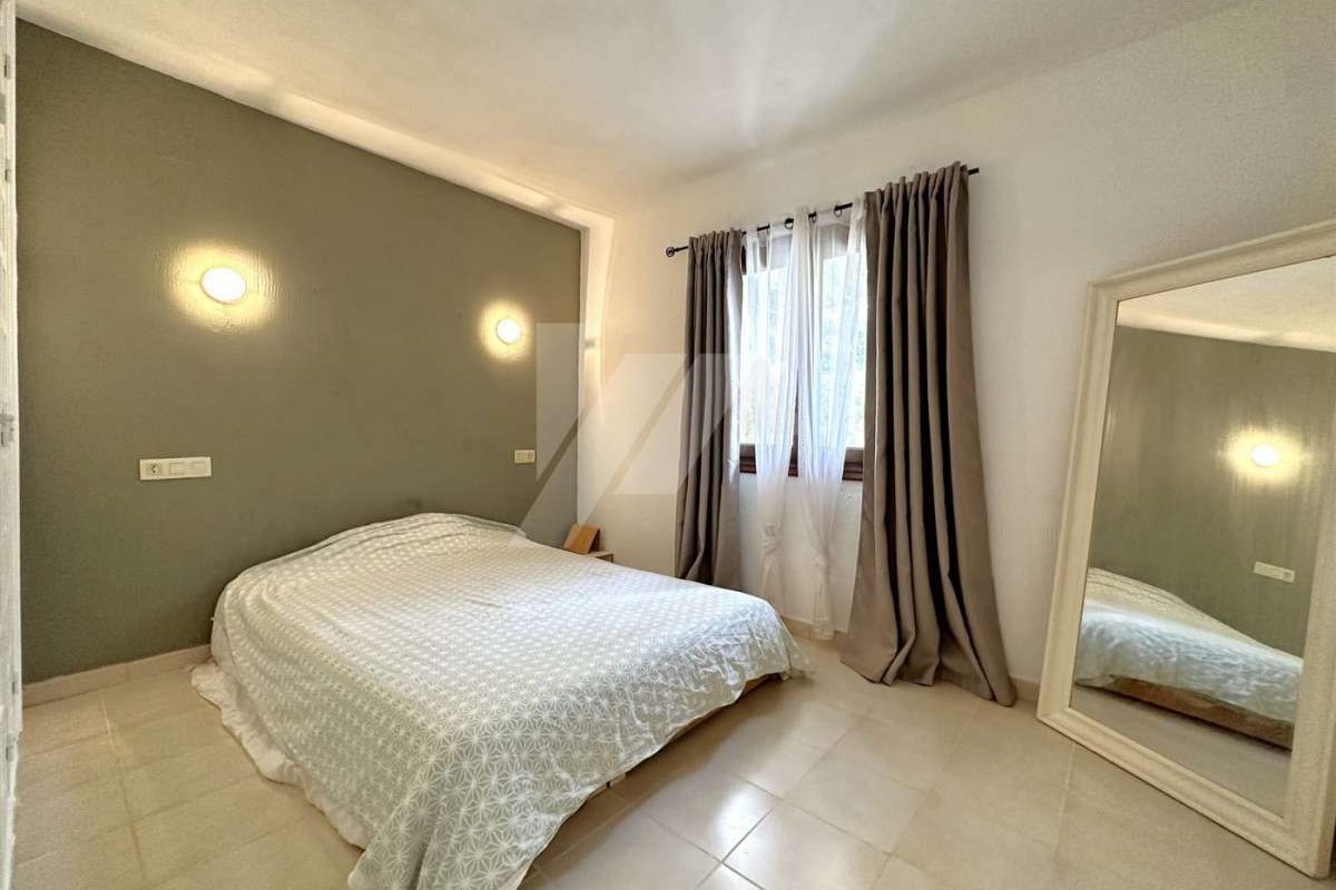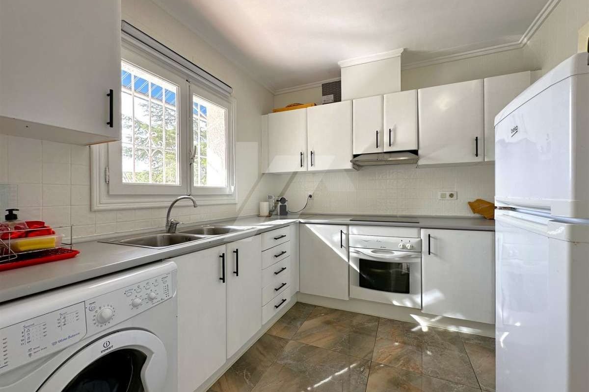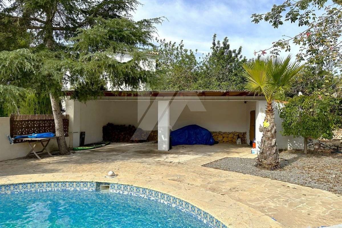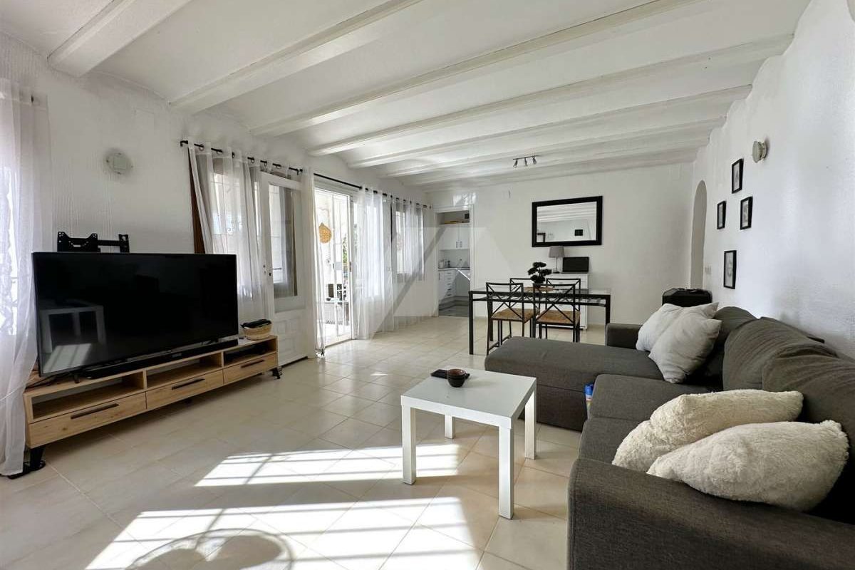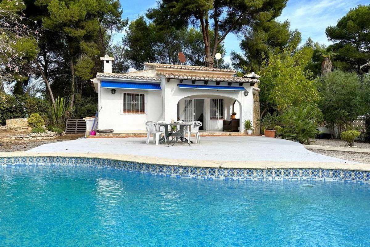 Villa for sale in Moraira.~~It is located in the sought after area of Arnella, right next to El Portet.~~It has a bit of sea view and is located just 1,5 km from the beach and the centre of the village.~~The plot is flat and fenced. ~~The property which is distributed in one floor, has an entrance porch which gives access to the living-dining room with fireplace, independent and refurbished kitchen.~~There are 2 bedrooms with fitted wardrobes and a fully renovated bathroom with bathtub.~~The mature garden has a swimming pool on the same level as the property, all facing south.~~Other extras: Air conditioning hot/cold, fitted wardrobes, parking, etc.~~The possibilities of extension make this property very attractive for those who wish to carry out their own design of distribution and reform. ~~Do not hesitate to contact our team to arrange a viewing.~