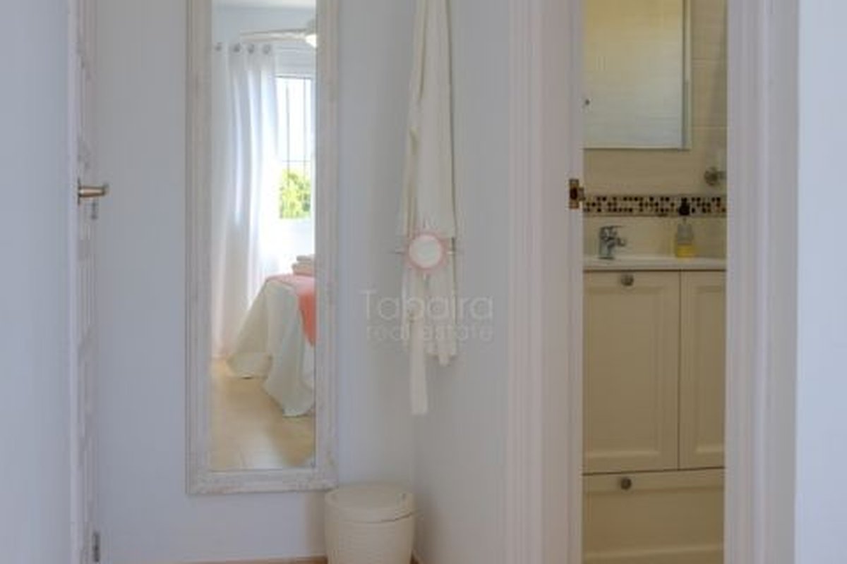 Discover this beautifully presented luxury villa for sale in the sought-after neighbourhood of Sabatera, Moraira. Perfectly located within walking distance of all amenities, including a supermarket, two artisan bakeries, and a wide range of bars and restaurants. The centre of Moraira and its beautiful sandy beaches are just a 15-minute walk from your door.~This villa offers almost 300 m² of perfectly maintained living space, carefully distributed over two floors connected by an elegant internal staircase. On the ground floor, you will find a spacious open-plan layout with a lounge, dining room, and modern kitchen that seamlessly transition into the terraces and swimming pool. A separate guest house with direct access to the pool offers optimal privacy and features three generous double bedrooms, each with its own en-suite bathroom. Completed with a storage/laundry room, guest WC and a small garage.~Features of the property:~~Almost 300 m² of living space spread over two floors~Spacious open-plan living area with lounge, dining room and kitchen, which seamlessly connect to terraces and swimming pool~Four bedrooms, all with en-suite bathrooms~Storage/laundry room, guest WC and garage~Internal staircase connecting both floors~External storage space and workshop~Fully air-conditioned (hot and cold in all rooms)~Open views bordering a green area in Moraira~~Exterior & Mediterranean lifestyle:~The villa is designed for year-round enjoyment of the Mediterranean climate. Relax under the covered poolside veranda with lounge and dining area, enjoy the sunny terrace and pergola, and take a refreshing dip in the 10 Mheated pool. For entertainment, there is a fully equipped summer kitchen with bar and barbecue, ideal for outdoor dining with family and friends.~Outdoor living:~~Large 10 M heated swimming pool with sunny terrace and pergola~Covered poolside veranda with lounge and dining areas~Summer kitchen with bar and barbecue – perfect for entertaining~Low-maintenance Mediterranean gardens~~This villa for sale in Sabatera, Moraira, is a rare opportunity to own a high-quality home in one of the most sought-after areas on the Costa Blanca. With spacious interiors, excellent outdoor areas and a prime location near the beaches and centre of Moraira, this is an ideal choice for families, retirees or investors.~Don`t miss out on this exceptional property – contact us today to arrange a viewing!~