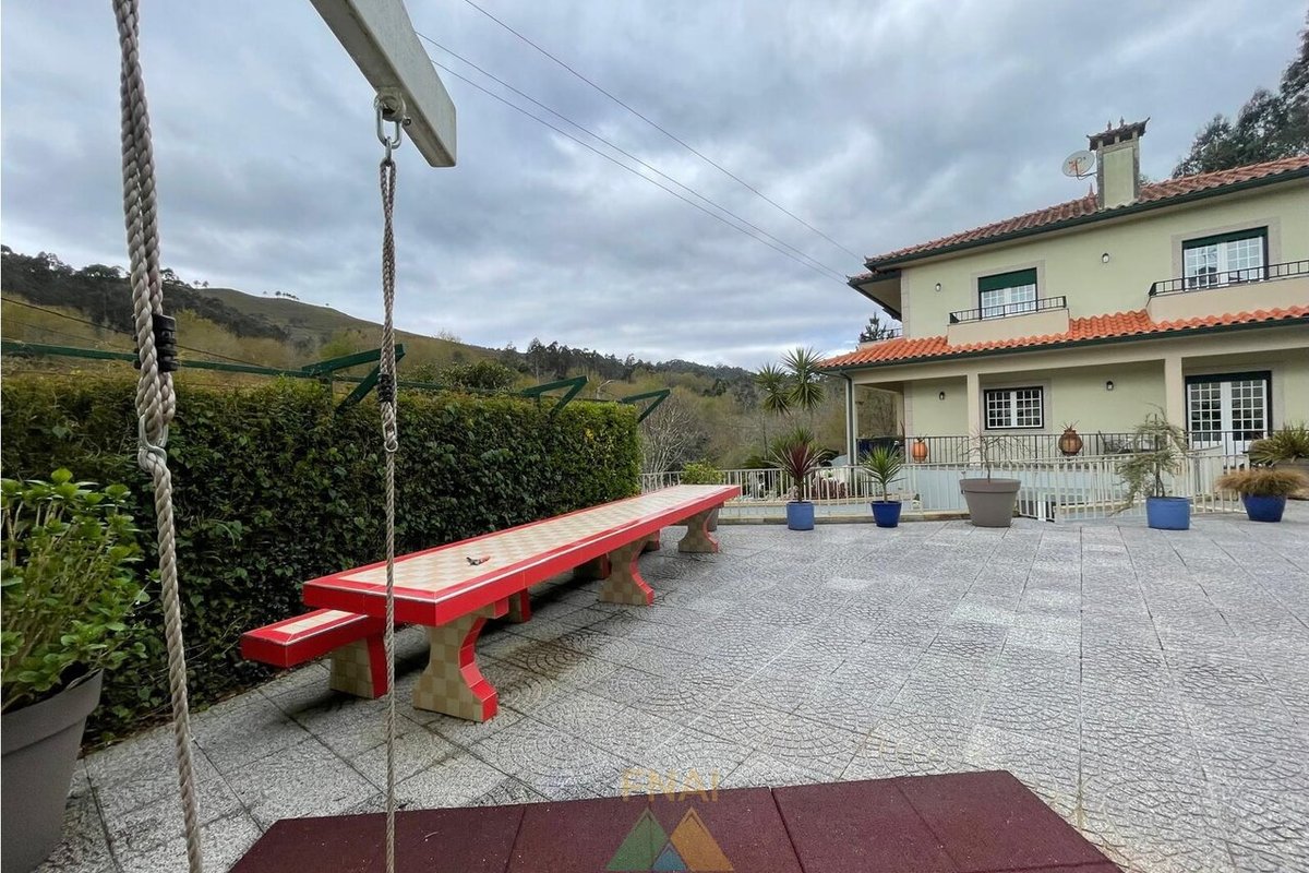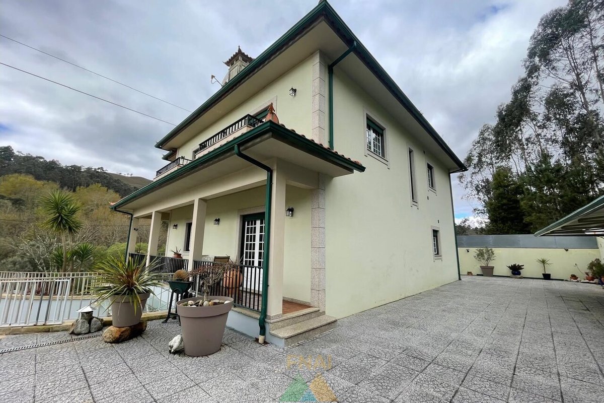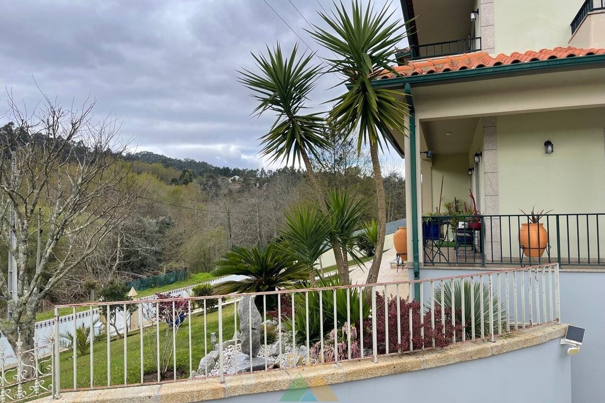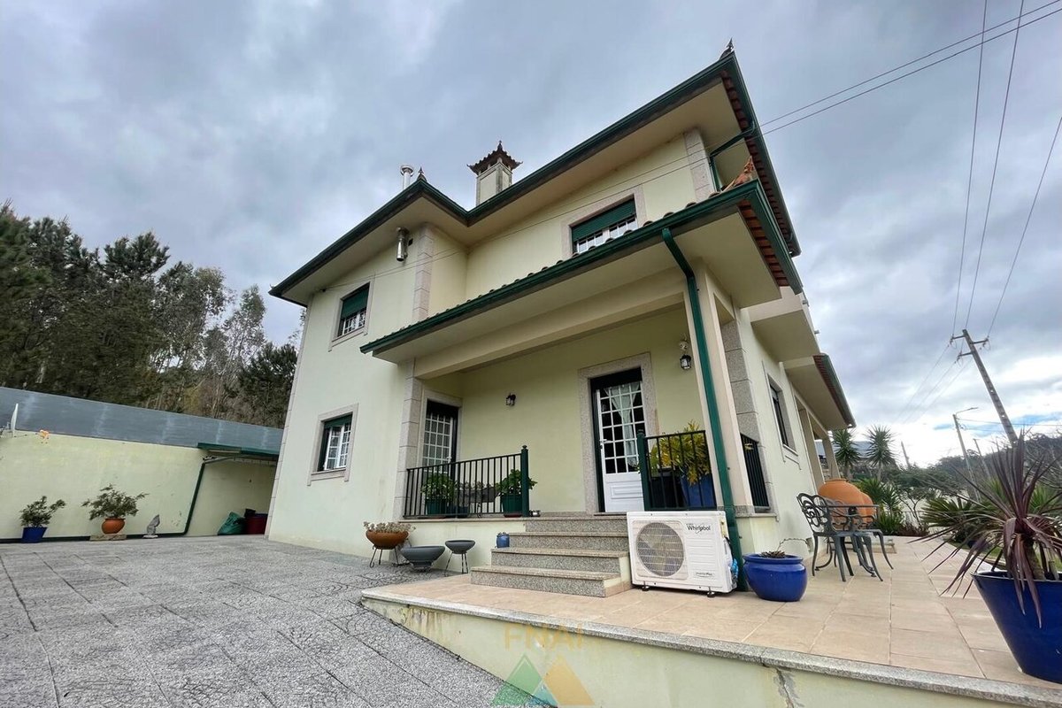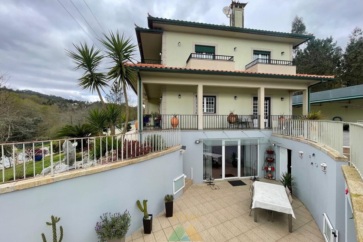 Impressive and luxurious 4+2 bedroom villa located just 4 minutes from the center of Ponte de Lima in Rebordões (Santa Maria). This villa is composed of 3 floors as follows: 1st floor: - 1 bedroom; - 1 bathroom; - Living room and dining room; - Full kitchen. 2nd floor: - 3 bedrooms; - 1 bathroom; - 1 extra bedroom or office. Basement or ground floor: - Living room; - Equipped kitchen; - Pantry; - 1 bedroom with storage room; - 1 toilet. Outside the property also has a closed garage for 3 cars, an annex with an outdoor kitchen equipped with oven and barbecue and covered parking space for numerous vehicles. With 2 automated car access gates, this property also has a dedicated area for orchard. Excellent location with stunning views and still the pleasure of hearing the passage of water from a stream that passes in front of the property. Book your visit now! For more information or visits: Call Samuel Araújo: + call to national mobile network) also available by Whatsapp. Fabio Neves Agence Immobilière + Office) (email) / (email) AMI nº21279 (url)