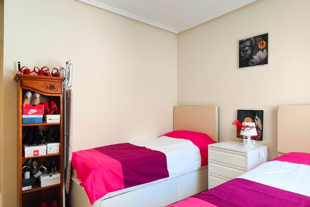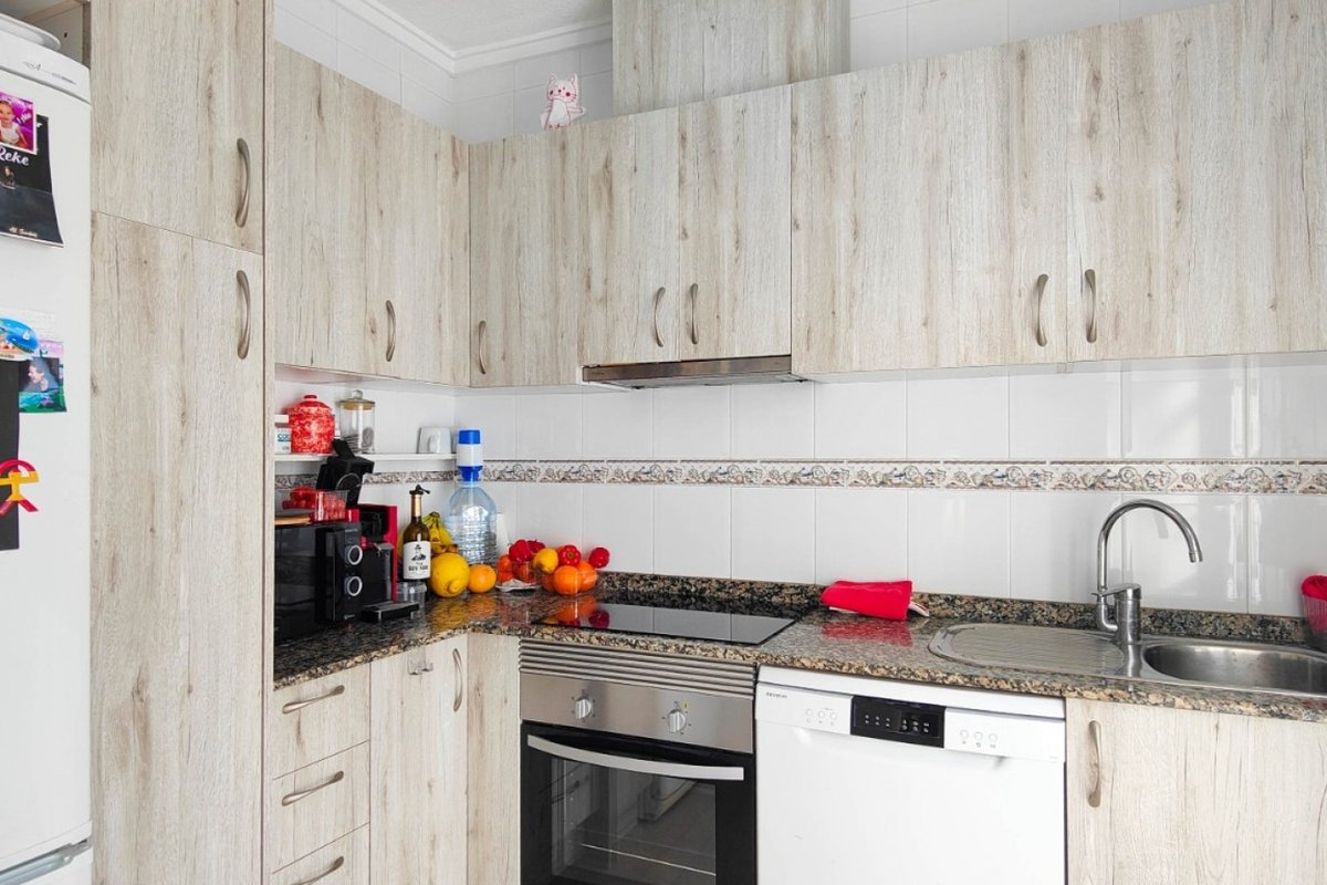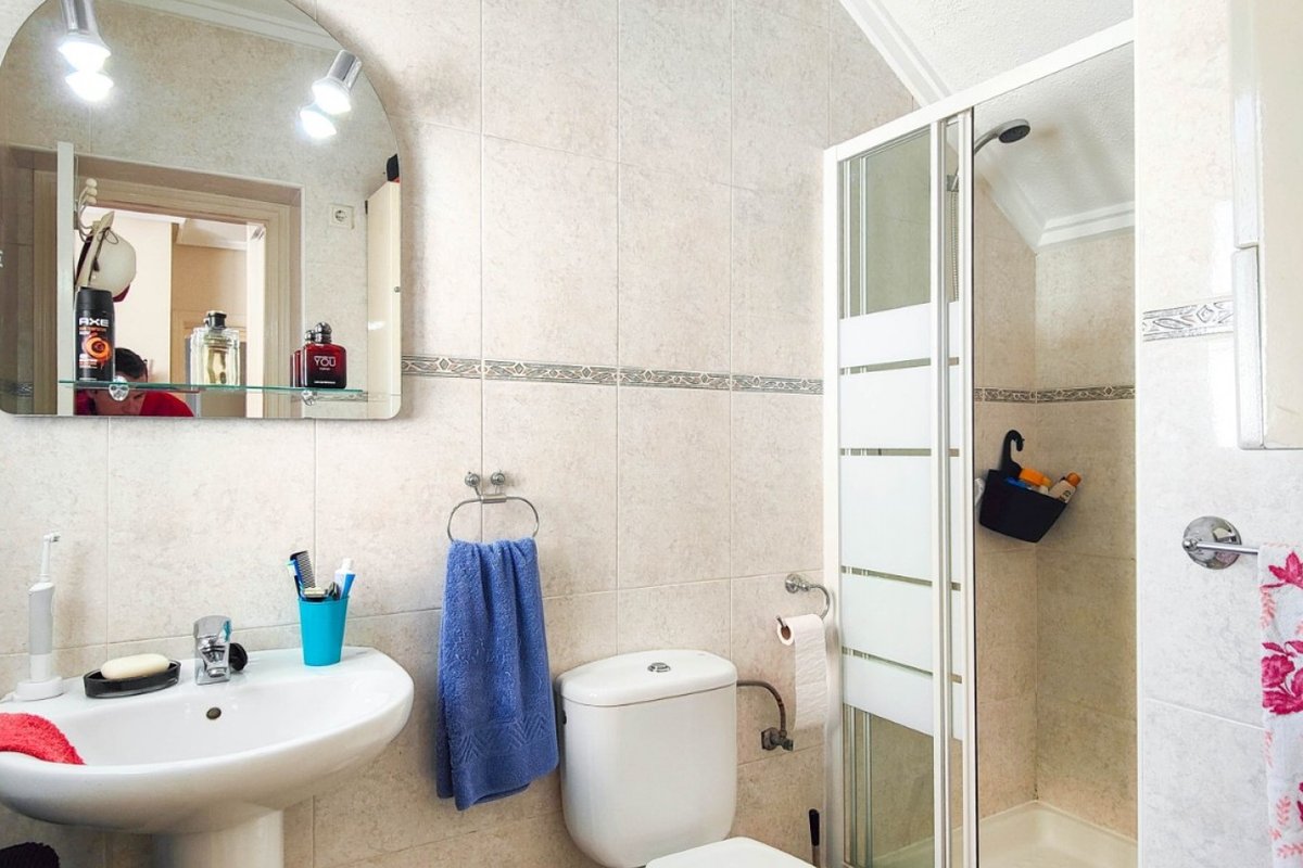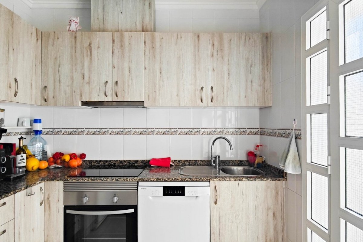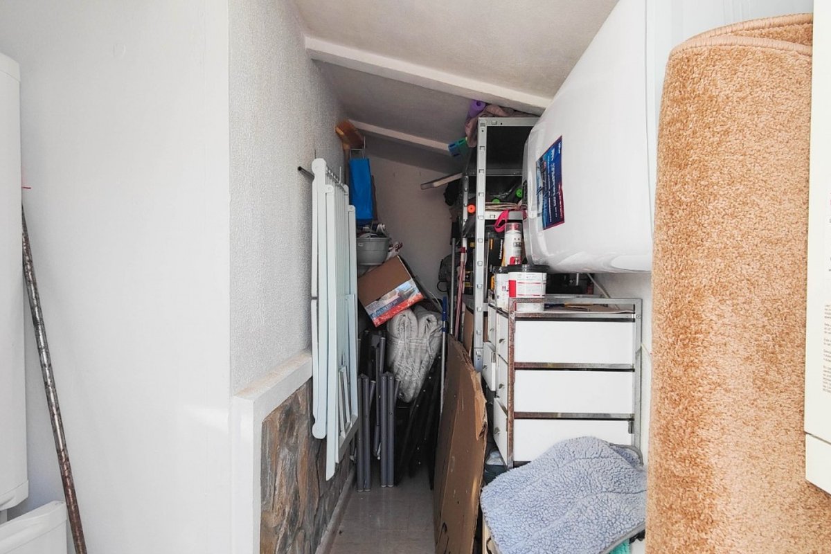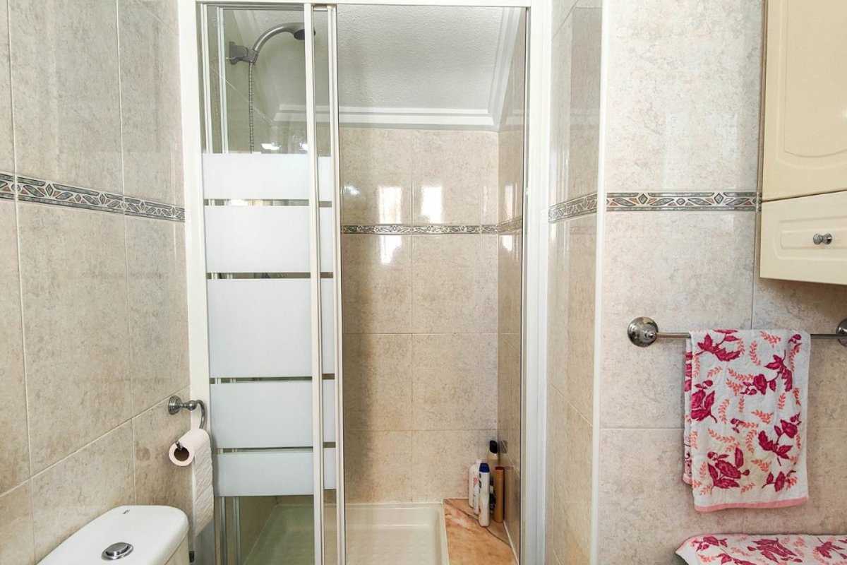This beautiful semi-detached villa is located on a 200 m² plot in a quiet and highly sought-after area of Ciudad Quesada, part of Rojales. Positioned directly in front of a spacious green area, the property enjoys completely open views, excellent privacy and a peaceful environment. The villa is distributed entirely on one level and is elevated with an air chamber underneath, providing improved insulation and comfort throughout the year. It offers 2 bedrooms with fitted wardrobes and 2 full bathrooms, one of them en-suite. The living room is spacious and filled with natural light thanks to its west orientation, and it is equipped with air conditioning. All rooms benefit from ceiling fans. The kitchen is independent and fully equipped. Outside, the property features a private garden of approximately 100 m², ideal for enjoying the Mediterranean climate, as well as a 15 m² west-facing porch overlooking the green area. There is also a 20 m² private solarium, perfect as a relaxation space, off road parking for the car, and a storage/laundry room. The facade and exterior walls have been recently painted, and the property is sold furnished, including white goods. The residential complex offers a communal swimming pool. Located close to the centre of Ciudad Quesada, with all amenities, shops and restaurants within easy reach. An excellent opportunity as a permanent residence, holiday home or investment property on the Costa Blanca South.