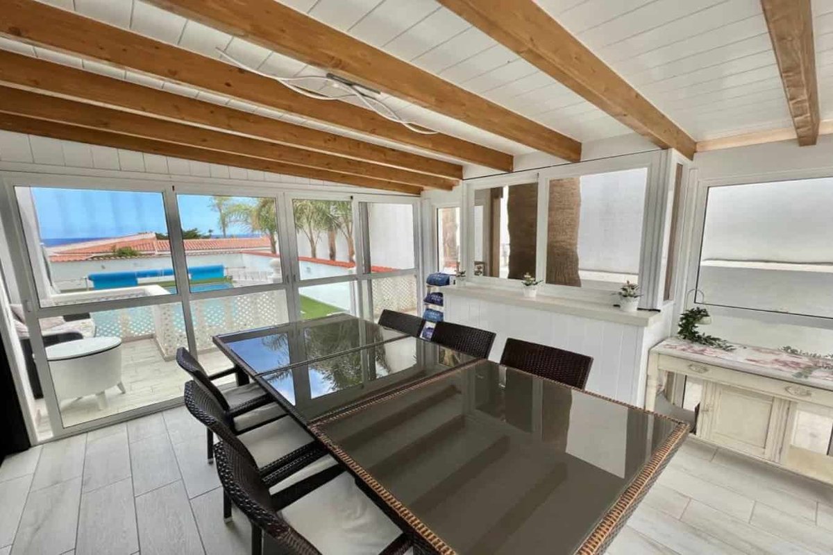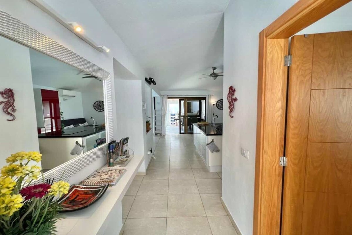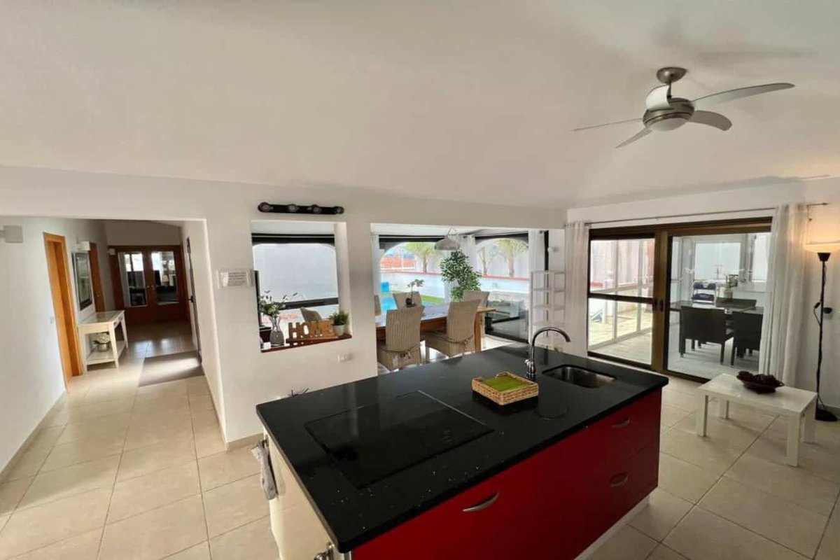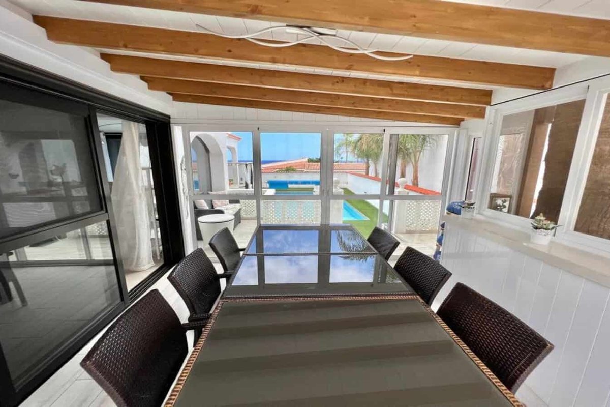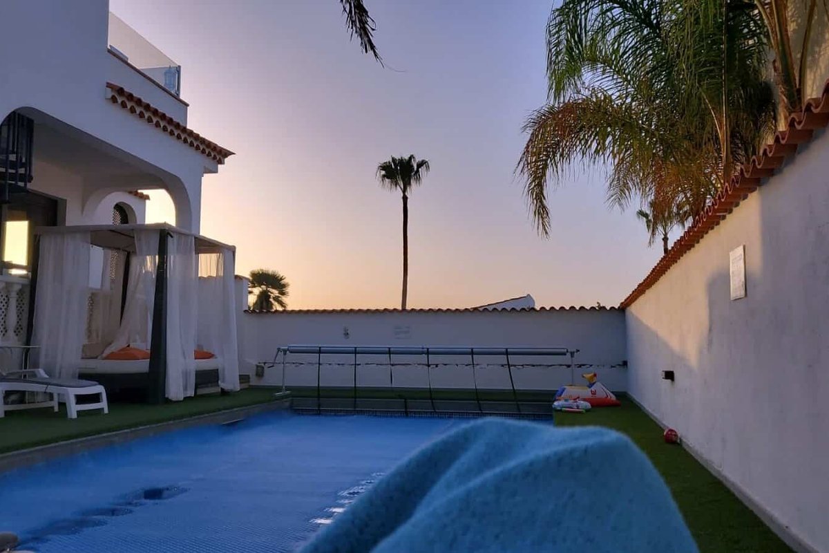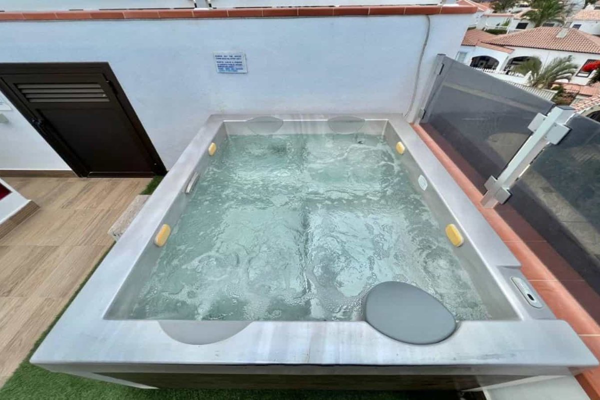 This beautiful independent villa located just 300 yards from the coast and the golf course at Amarilla Golf, South Tenerife. On the ground floor are 2 bedrooms, a large lounge/dining area and open plan kitchen, an outside covered diving area and a heated swimming pool. On the first floor are a further 2 bedrooms, lounge and bathrooms and on the roof is a large sun area and a jacuzzi.