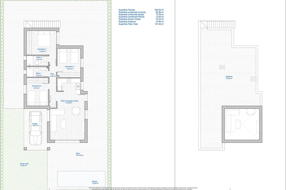 NEW BUILD VILLAS IN LOS ALCAZARES New Build detached villa build on the generous plot of 350m2 in Los Alcazares . Villa with 3 bedrooms and 2 bathrooms, open plan kitchen with the lounge area, fitted wardrobes, solarium, private garden with off road parking space and space for a swimming pool. An options for a private pool at an extra cost. Spacious living room has large sliding doors to a terrace. Ample terraces at the front and rear ensure that owners can sunbathe throughout the day. This villas have modern fitted kitchens with a choice of colours for kitchen units and wall tiles in both kitchens and bathrooms and also floors and terraces. Residential of villas located 1 km from the beach and the town of Los Alcázares, where you can practice various water sports, surrounded by several golf courses. City of Cartagena less than 15 minutes by car and 30 minutes from Murcia Corvera airport.~