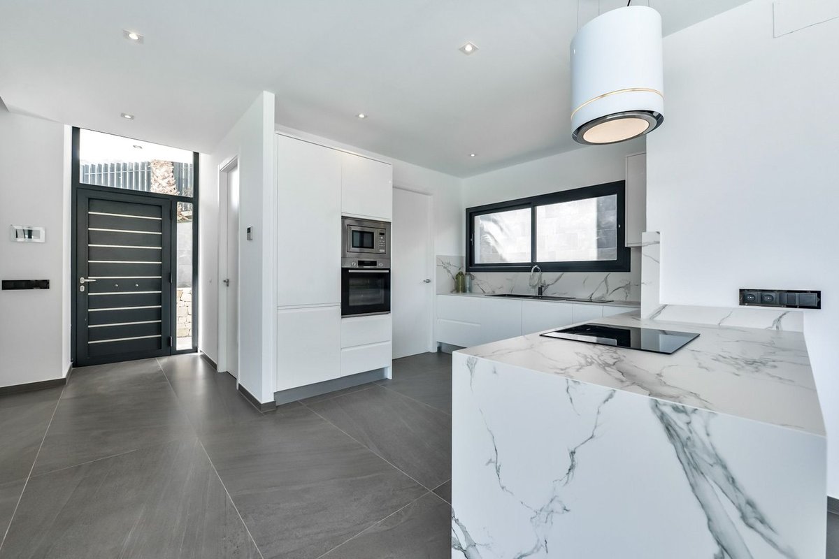 Impressive modern luxury villa in a prime location with sea views in Jávea~~This stylish modern villa is located in an excellent position within the highly sought-after Tosalet 5 urbanisation in Jávea and enjoys open views over the green hills towards the sea. On clear days, the view even extends as far as Ibiza on the horizon.~~The villa stands out for its contemporary architecture with clean lines and defined shapes, where classic elements are harmoniously combined with avant-garde materials.~~The basement level features a double garage with automatic door, as well as a spacious multifunctional basement area. The main floor is laid out with a generous living and dining area, a fully equipped kitchen with adjoining utility room, and a guest toilet. Adjacent is a large covered terrace with barbecue area, providing a pleasant shaded space during the summer months and offering beautiful sea views.~~The open sun terrace includes a large infinity-effect swimming pool with wide entrance steps and underwater lighting. On the upper floor there are three spacious bedrooms and two bathrooms, one of which is en suite to the master bedroom. All bedrooms have direct access to the large roof terrace.~~The kitchen is fully equipped with built-in appliances including a ceramic hob, oven, microwave, dishwasher and high-quality bespoke cabinetry. The property is heated by an air-source heat pump supported by solar energy and features a central air conditioning system that efficiently cools and heats the different areas of the house.~~The garden is laid out in terraces with natural stone walls and planted with local Mediterranean vegetation. Irrigation is provided via a central irrigation system. The plot is fully enclosed with walls and fencing and includes a driveway to the garage with an electric gate, as well as a separate pedestrian access from street level at the front door.~~A contemporary villa in an outstanding location, ideal for those looking to combine comfort, design and views with privacy and tranquillity.~