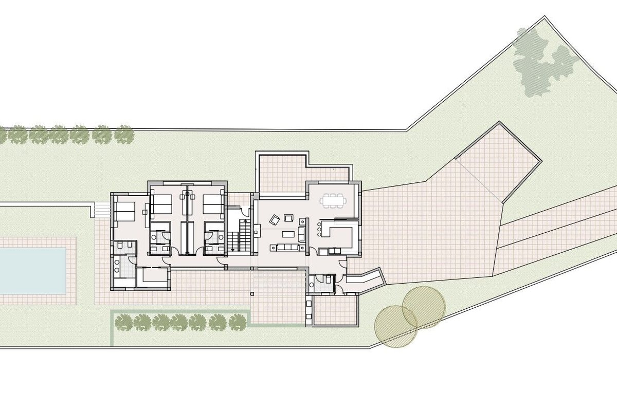 This beautiful Ibiza-style villa is built on a 1514 m2 plot in the modern quiet residential area of Valsol in Jávea. With a double orientation, you will enjoy all-day sunlight and views of the majestic Montgó and rolling countryside. The ground floor comprises a very spacious living-dining room, complete with an open-plan kitchen, which comes fully equipped. The living room, bathed in natural light thanks to its double orientation, is perfect for relaxing and entertaining. In addition, there are three more double bedrooms on this floor, each with an en suite bathroom and a guest toilet. On the upper floor is another fourth double bedroom with an en suite bathroom, a dressing room and two large private terraces where you can enjoy the beautiful views. Outside, an oasis of relaxation awaits with an inviting swimming pool surrounded by an 80m2 terrace with an outdoor kitchen and an 18m2 covered terrace, ideal for outdoor dining and lounging. A spacious driveway with a stylish pergola provides ample parking for several vehicles. This dream villa is just a 10-minute drive from both Jávea`s sandy beach and charming historic centre. Moreover, two international schools are within easy reach, less than 2 km away. Don`t miss this unique opportunity to live in luxury and comfort in a prime location on the Costa Blanca!~