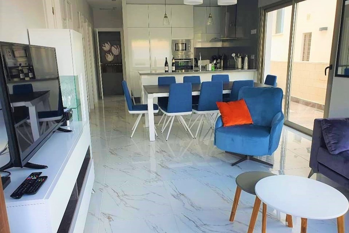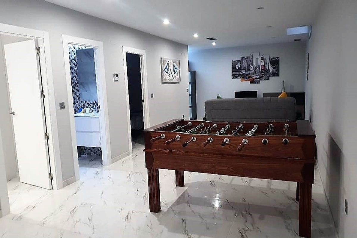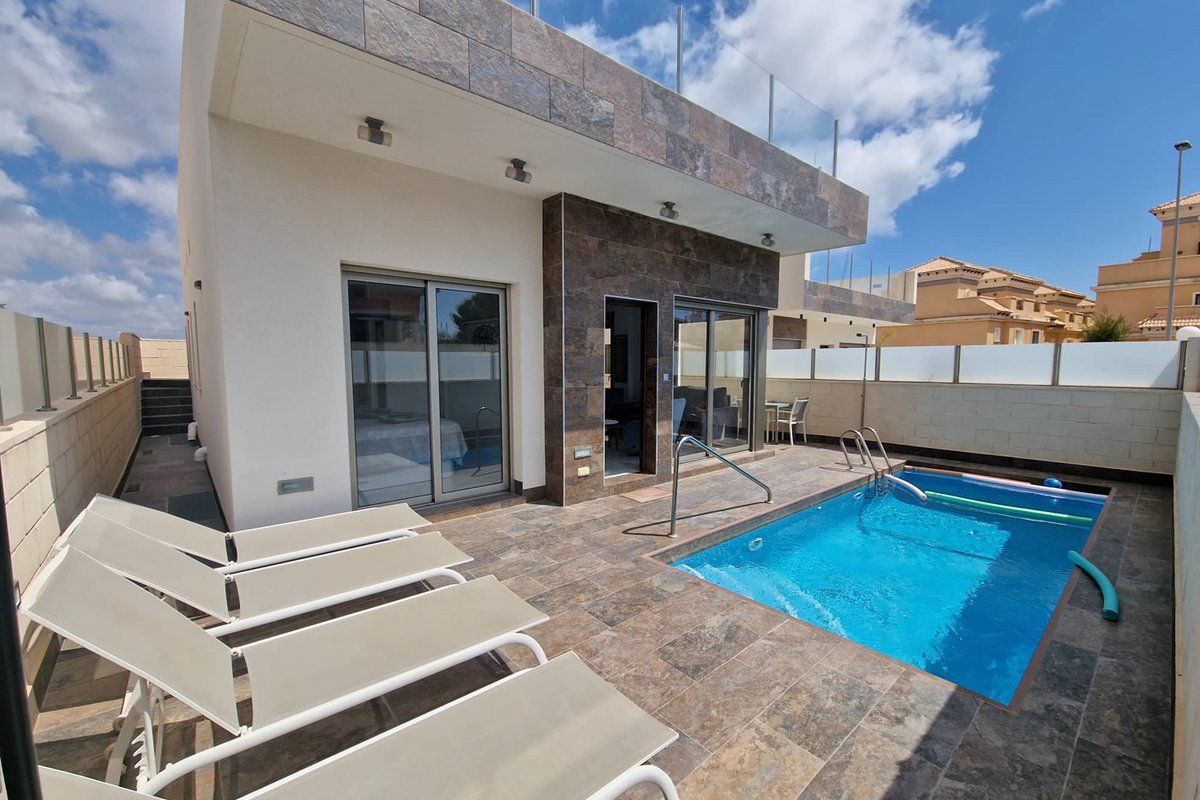 Discover this modern villa for sale in Villamartín , one of the most sought-after areas of Orihuela Costa , perfect both as a permanent residence and for enjoying exclusive holidays on the Costa Blanca . Located just 4 km from the most beautiful beaches and close to all amenities —supermarkets, pharmacies, shops, bars, and restaurants—this property offers an ideal combination of location, comfort, and Mediterranean lifestyle . The house is distributed over two floors, with a private swimming pool , open parking area , and a spacious, multifunctional basement . On the main floor, there are three double bedrooms , one of which is en suite with a private bathroom , a bright living-dining room , an elegant open-plan kitchen with a peninsula breakfast bar , and a separate bathroom . The basement houses two additional double bedrooms , a full bathroom , a laundry room , and a large multipurpose room , ideal as a recreation room, gym, or guest apartment. Outside, the swimming pool and access to the private solarium allow you to enjoy summer evenings in complete privacy . Surrounded by prestigious golf courses such as Villamartín Golf , equestrian activities, water sports, shopping centers and an excellent gastronomic offer, this villa represents a unique real estate investment opportunity on the Costa Blanca.