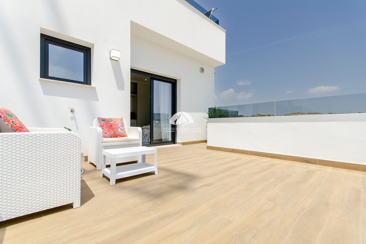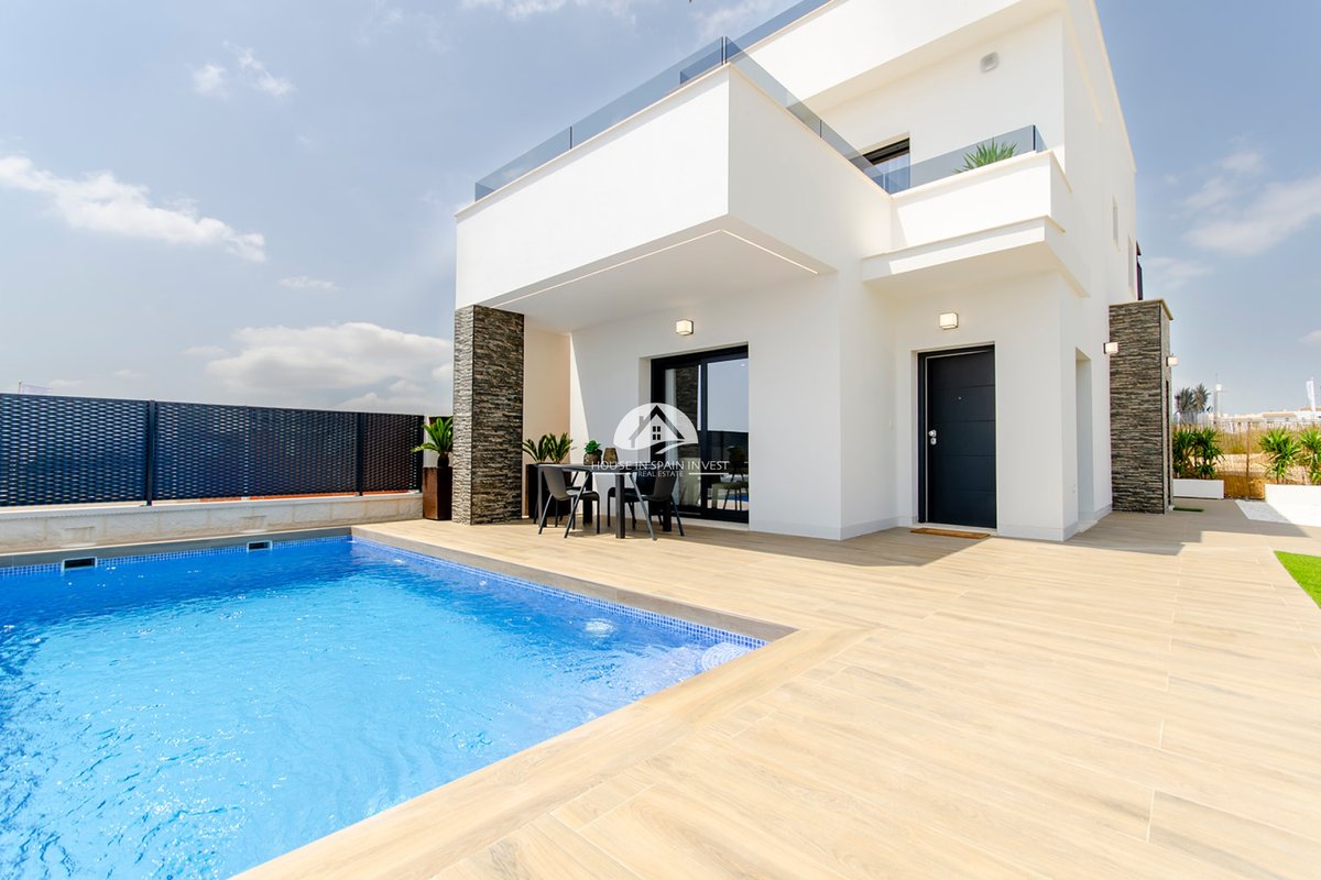 Located in the charming town of Orihuela, this residential complex offers 39 detached homes that stand out for their modern and functional design. These properties are designed for those seeking a home in a tranquil setting, yet with all amenities within reach. Proximity to a golf course, just 0.85 km away, adds an additional appeal for golf enthusiasts. The homes feature three bedrooms and three bathrooms, providing a spacious and comfortable space for the whole family. The option to choose an optional solarium allows residents to enjoy the Mediterranean climate to the fullest.OUTDOOR AREASThe outdoors of these detached homes in Orihuela are designed to maximize enjoyment of the surroundings. Each property features a private garden, ideal for creating a personal oasis of tranquility. The terraces offer additional space for relaxation or entertaining guests, while the option of a solarium allows for panoramic views and sun enjoyment all year round. Additionally, each home has a private pool, perfect for cooling off on hot days. The inclusion of a pergola adds a touch of elegance and functionality, providing shade and style to outdoor spaces.INDOOR AREASThe interior of these homes in Orihuela is designed with a focus on comfort and functionality. Ceramic floors add a modern touch and are easy to maintain. The homes come fully furnished, making moving in easy and allowing enjoyment of the new home from day one. The kitchen is equipped with high-quality appliances, and the built-in wardrobes in the bedrooms offer ample storage space. The air conditioning system, along with additional pre-installation, ensures a pleasant environment throughout the year. Electric blinds and the video intercom add an extra level of comfort and security.COMMON AREASThe residential complex offers its residents the convenience of community parking, ensuring that parking is never an issue. This shared space is designed to facilitate the daily life of residents, providing easy and secure access to their vehicles.