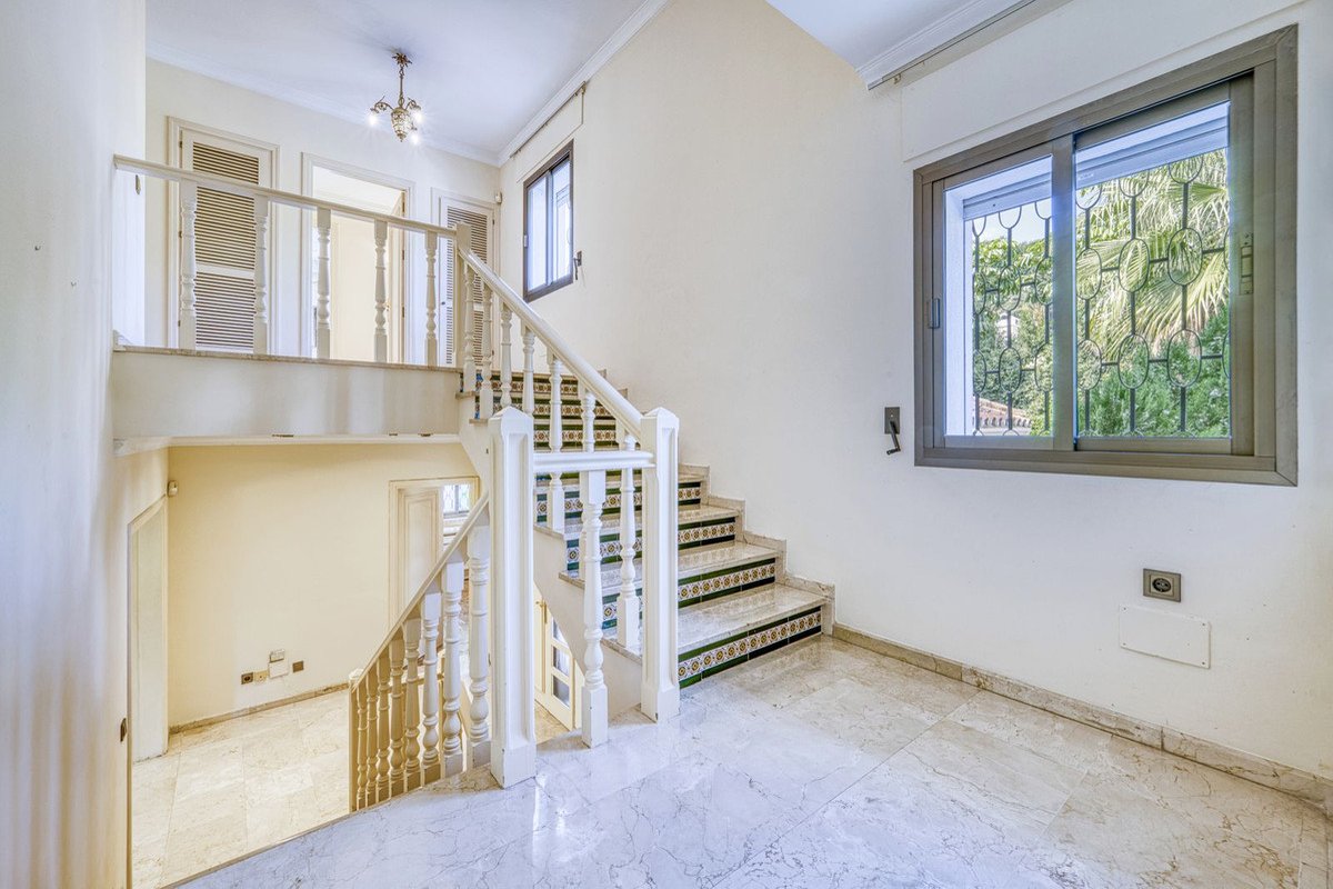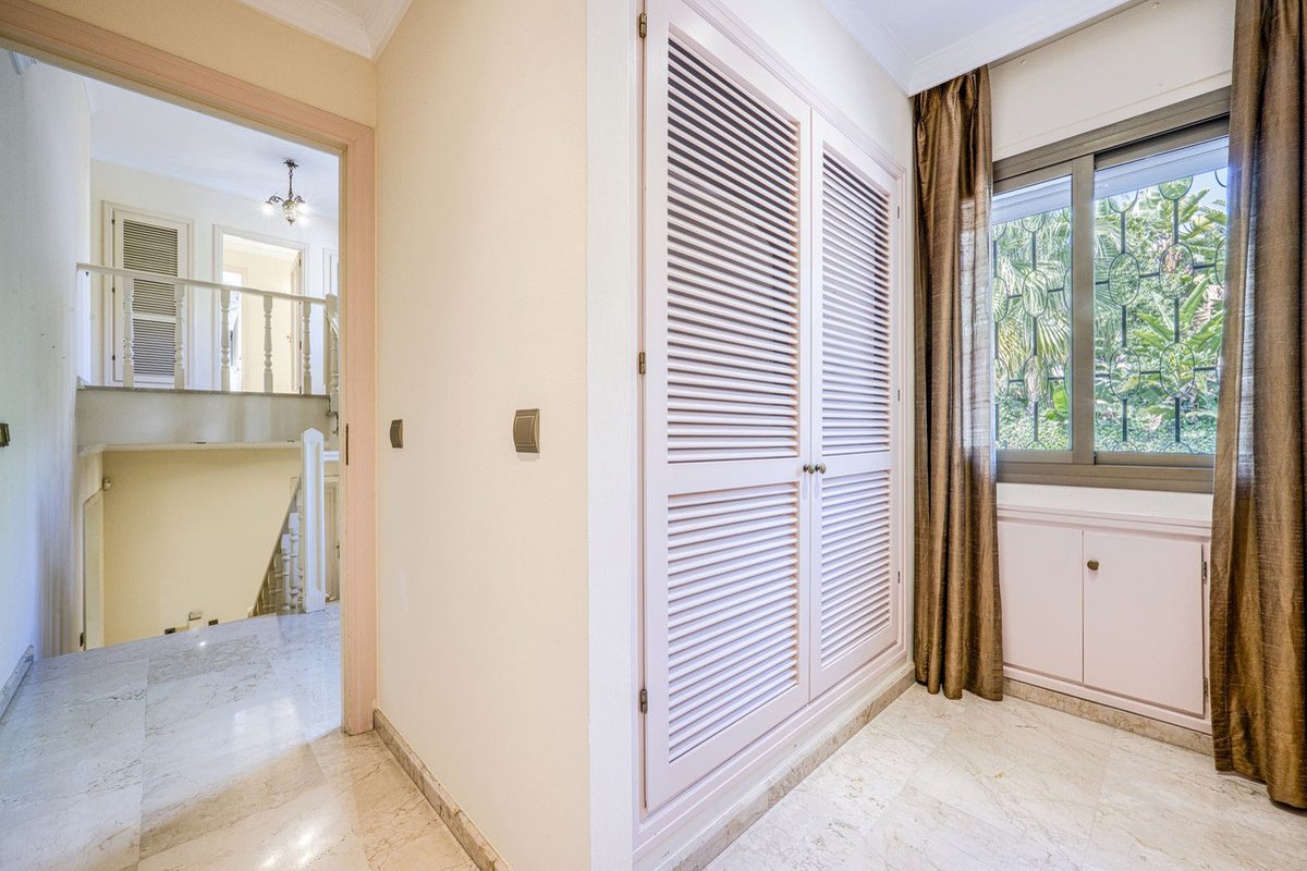 The villa sits on a large, flat plot of 1,006 m², a valuable asset in Los Monteros, offering great possibilities for either a renovation or a new construction project.