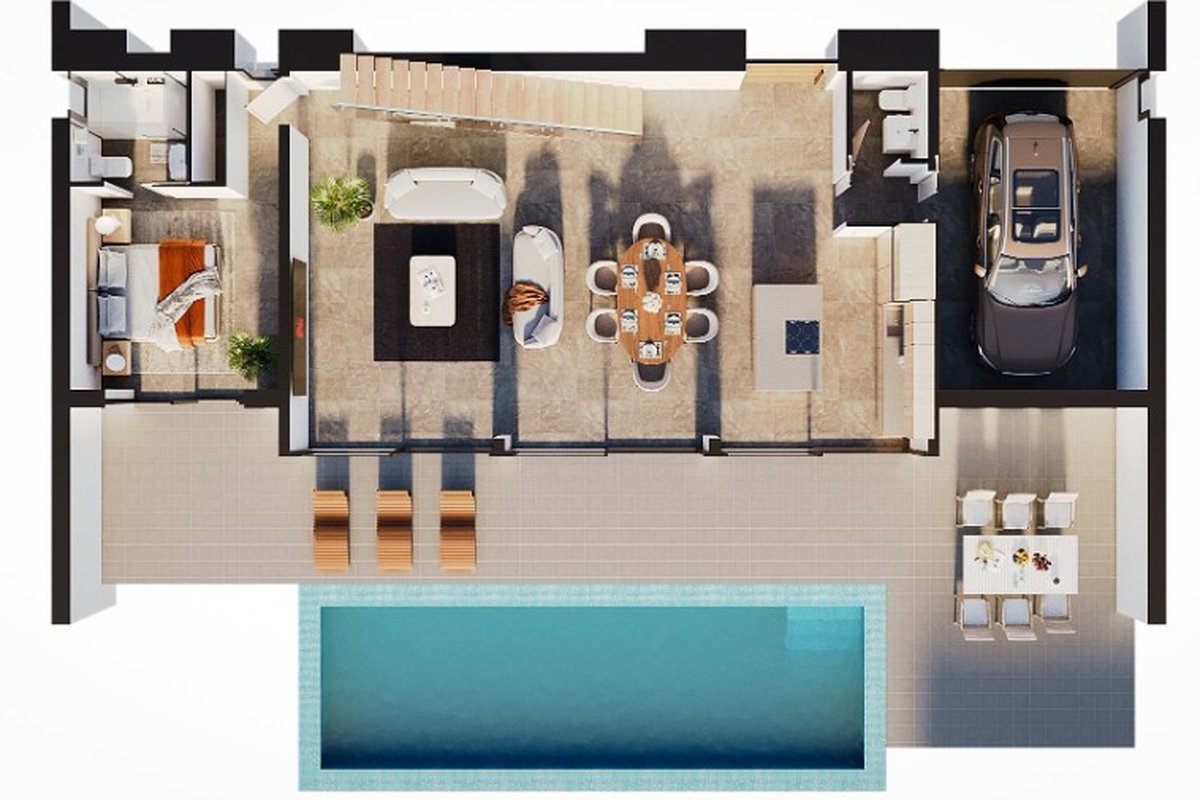 ComodidadesUn hogar que combina estilo y confort con doble altura en el salón, cocina equipada y baños amueblados. Disfruta de tu jardín y piscina privada. Con garaje y climatización eficiente todo el año.